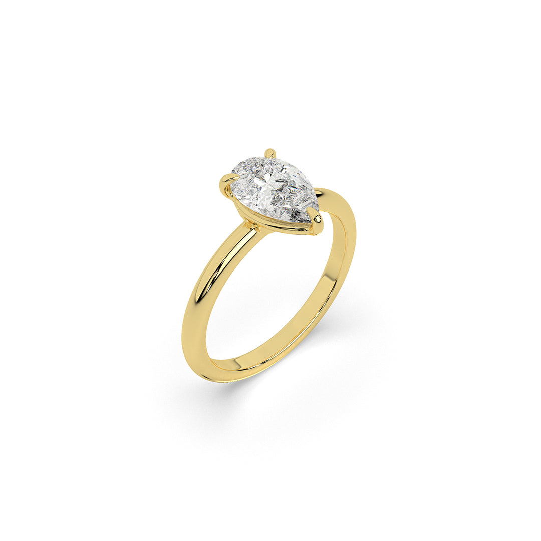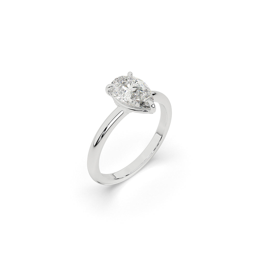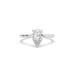 Elegance in its purest form, this ring is a masterpiece of modern minimalism. A luminous 0.95 carat pear-cut diamond ...