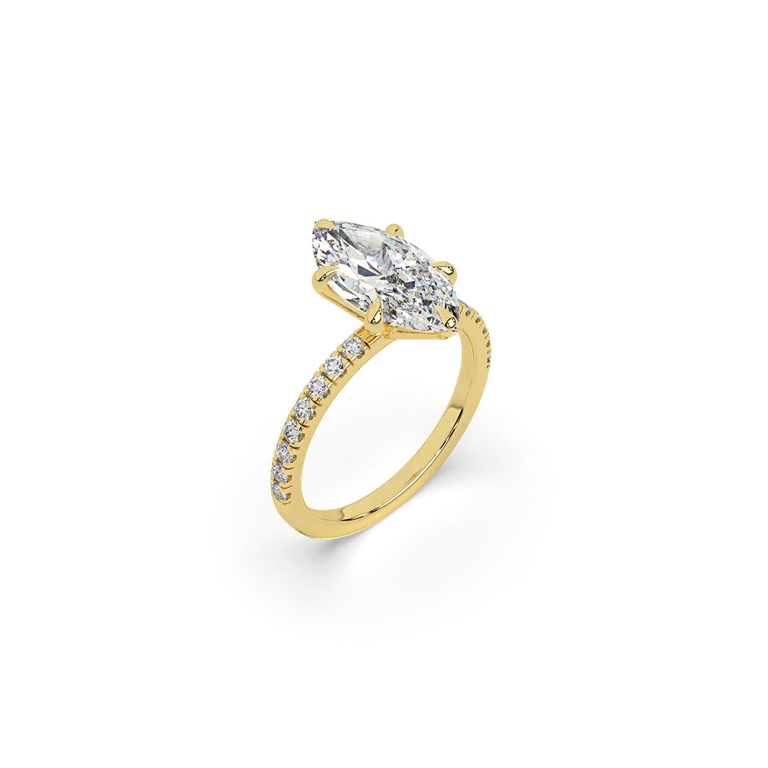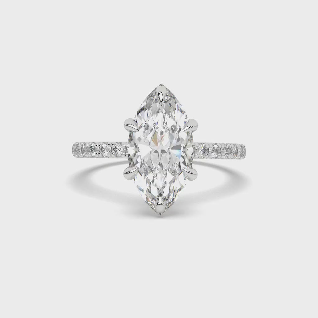 This ring is an exquisite representation of timeless elegance. Featuring a dazzling 1.41 ct marquise-cut diamond as i...