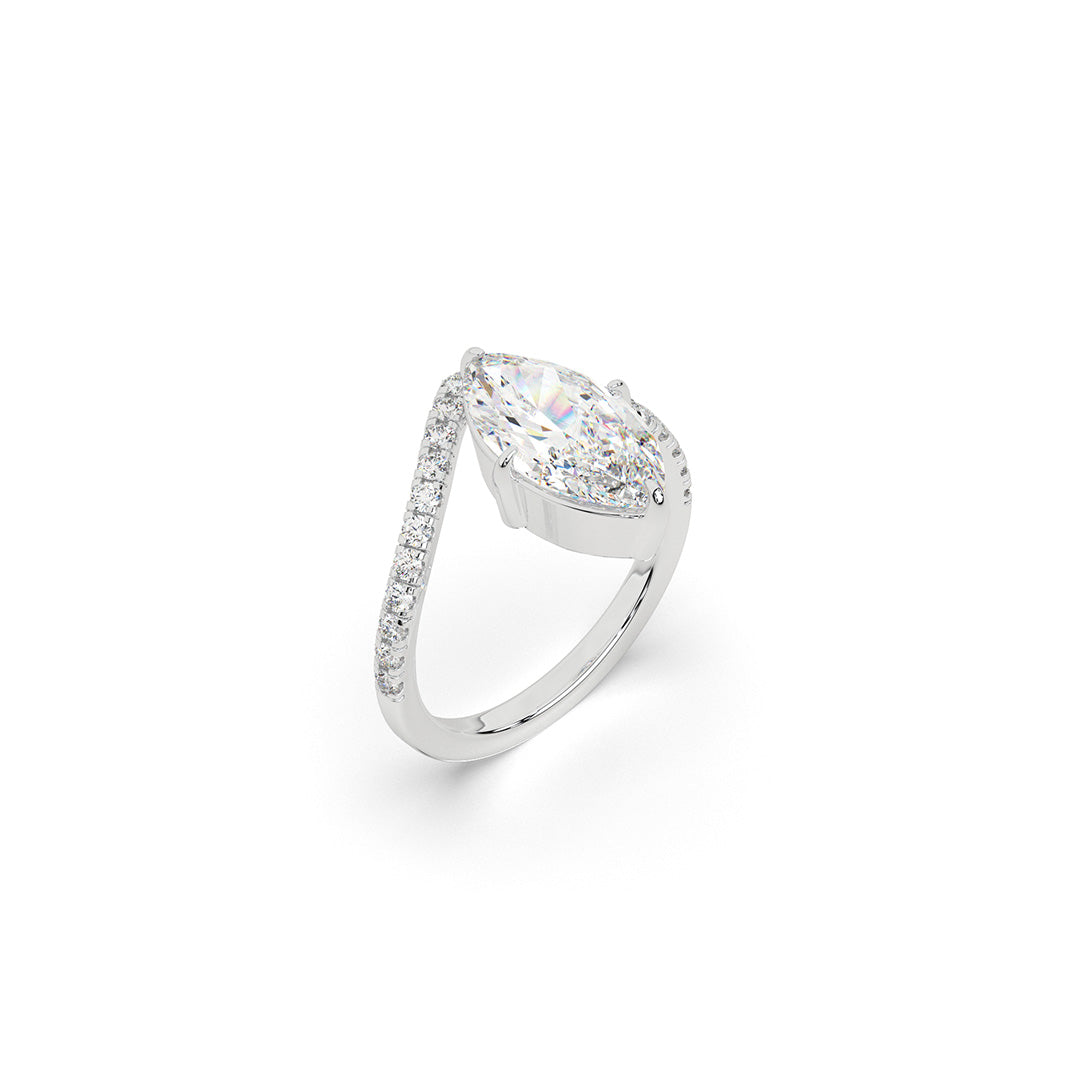 Striking and unconventional, this ring embodies the essence of elegant movement. A captivating 1.97 ct marquise-cut d...