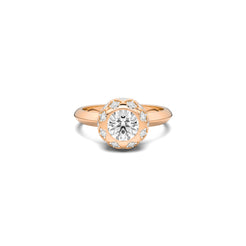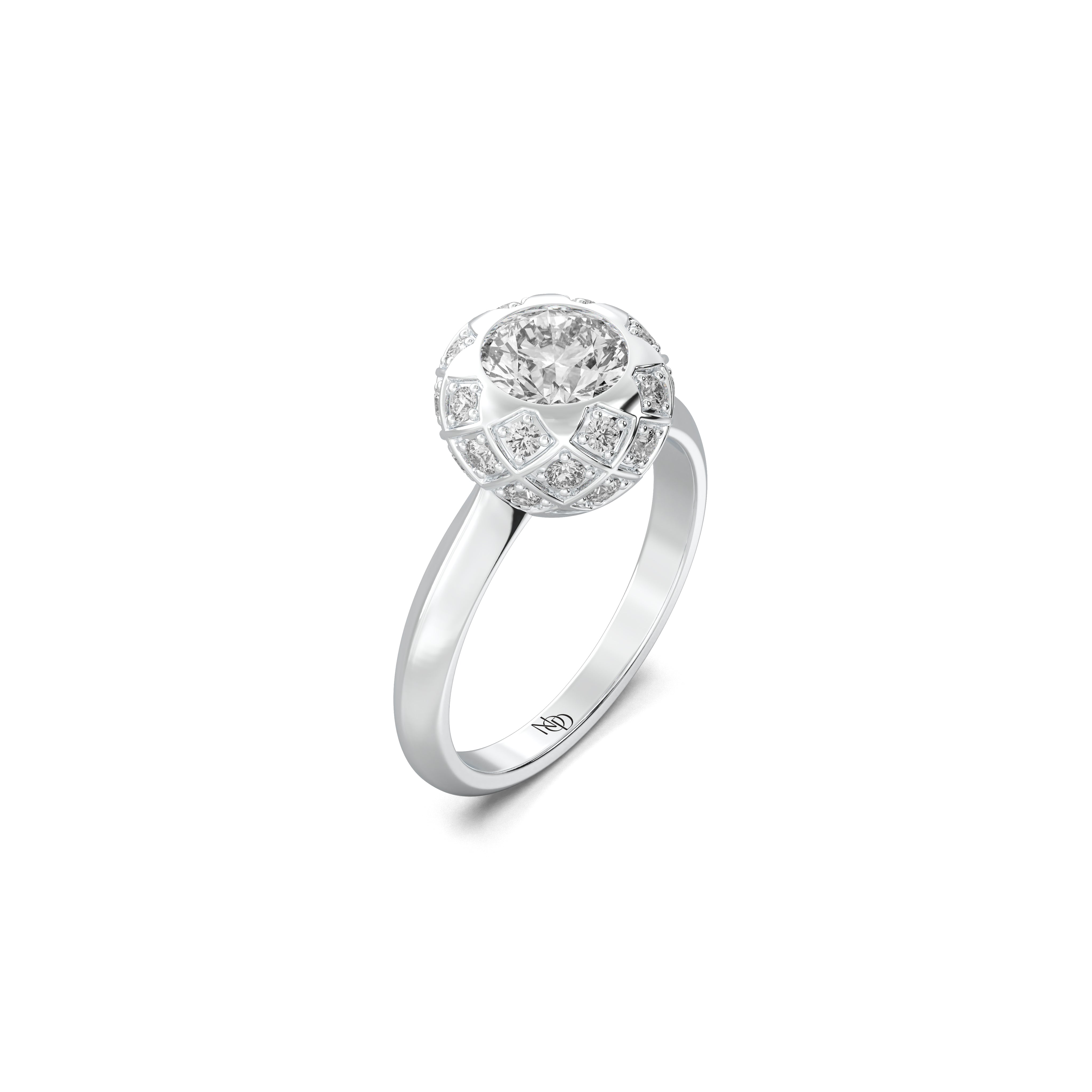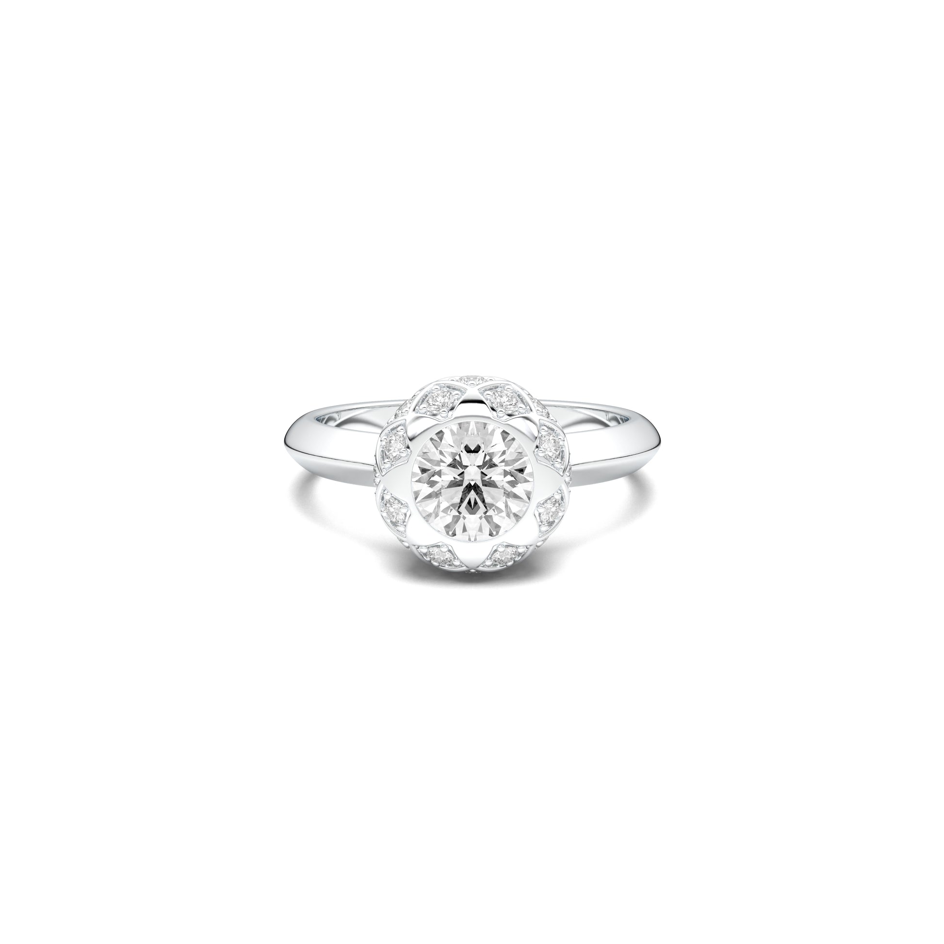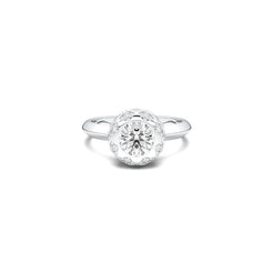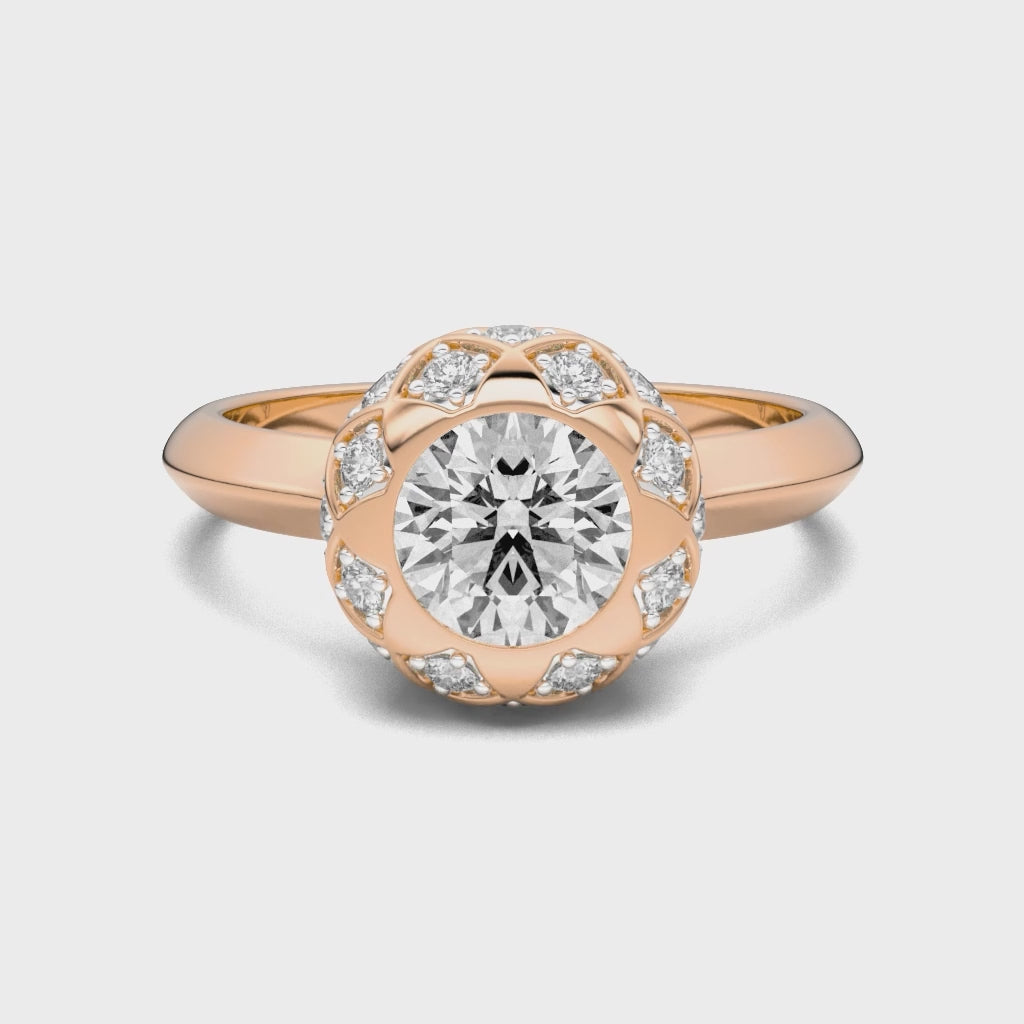 Surrounded by a halo of smaller lab-grown diamonds, every angle catches a different glimmer, creating a dance of depth and motion — like light exhaling from within.