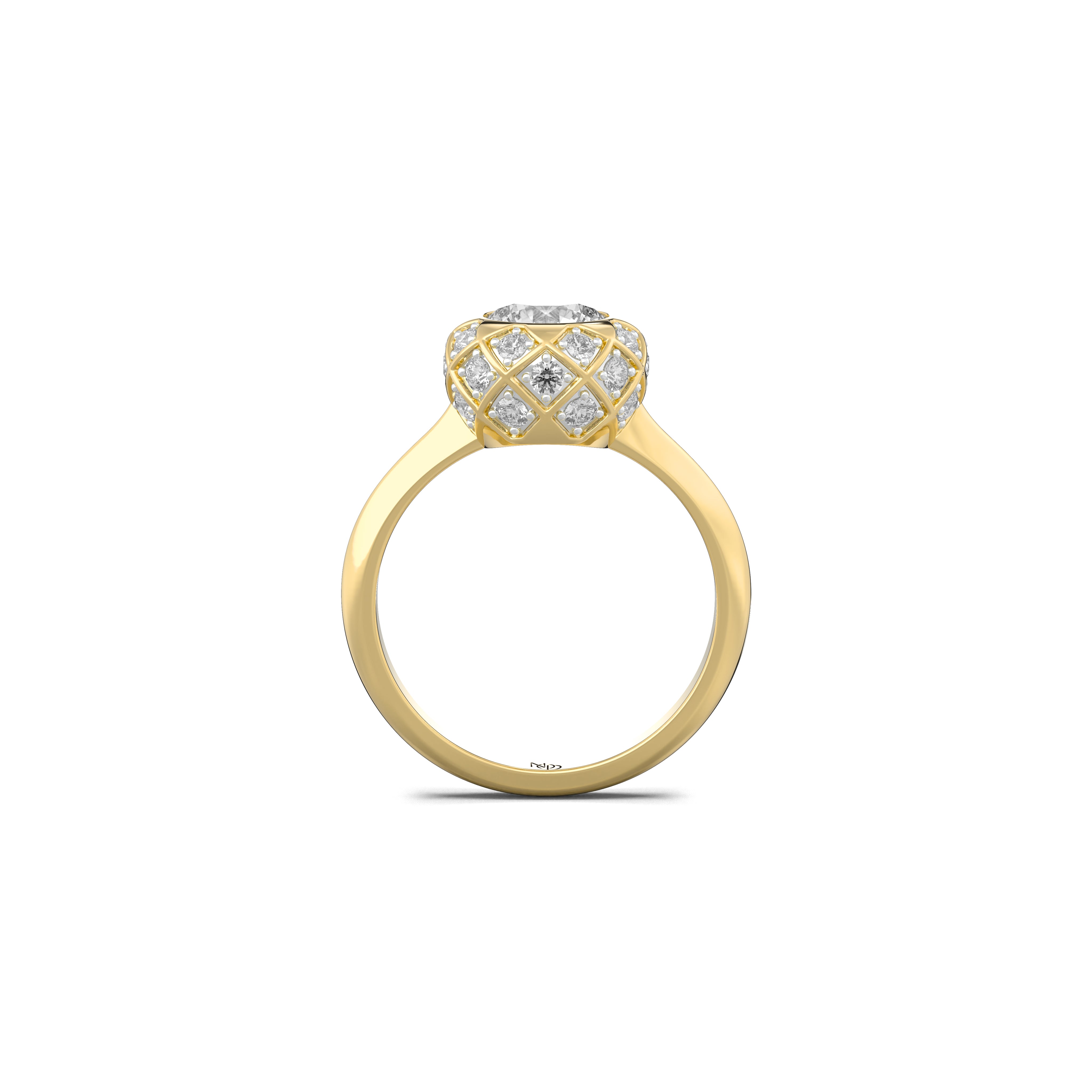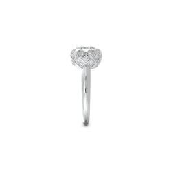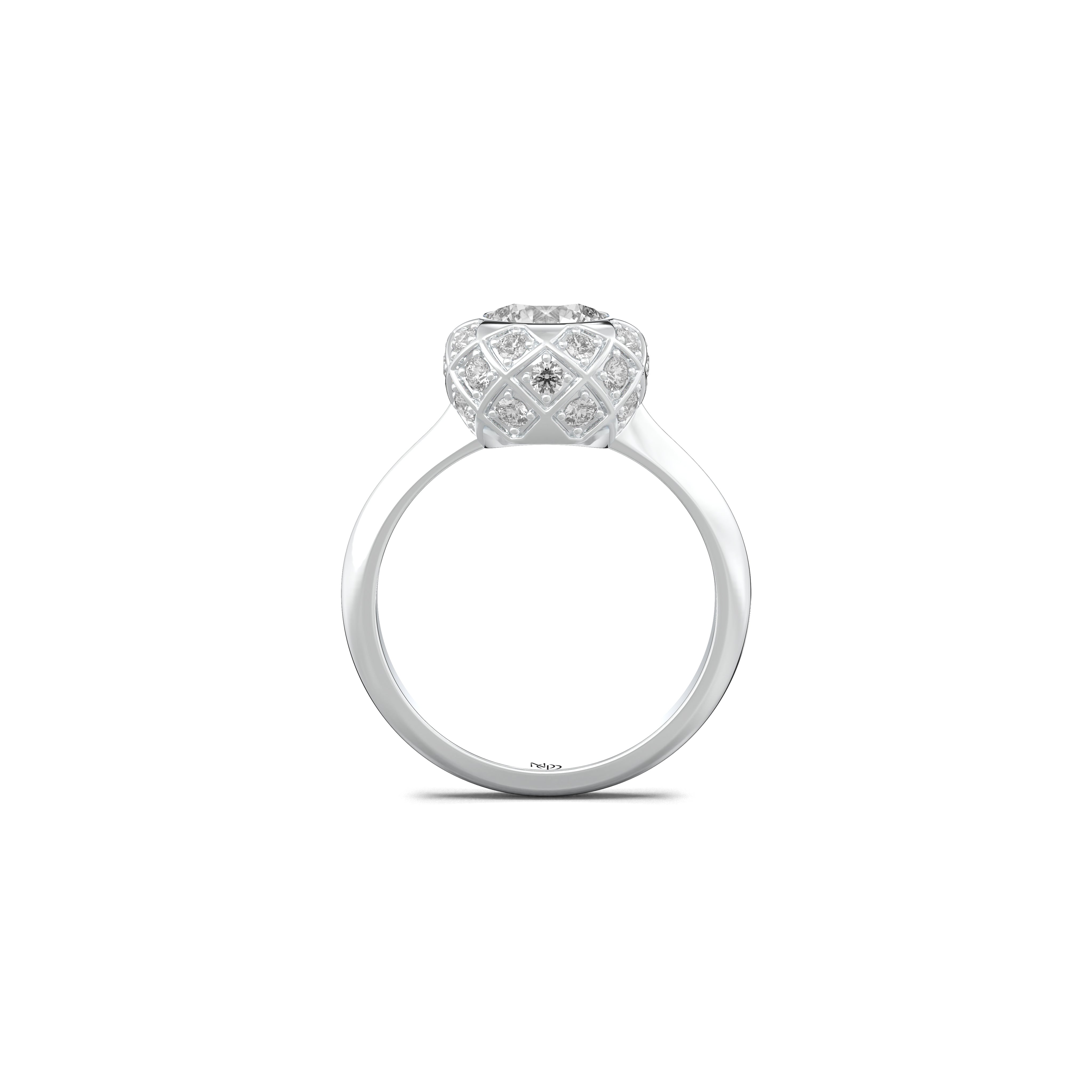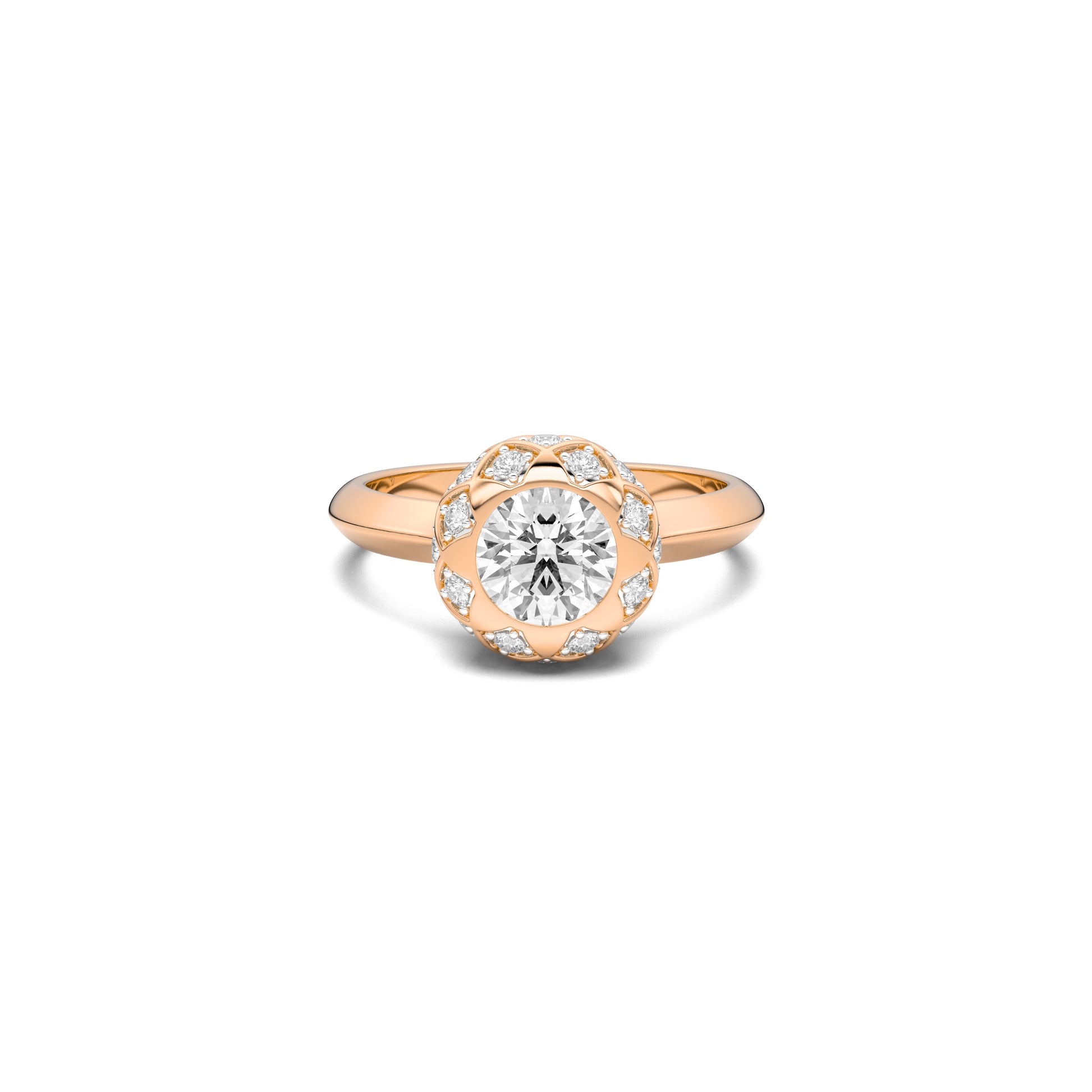 Surrounded by a halo of smaller lab-grown diamonds, every angle catches a different glimmer, creating a dance of depth and motion — like light exhaling from within.
