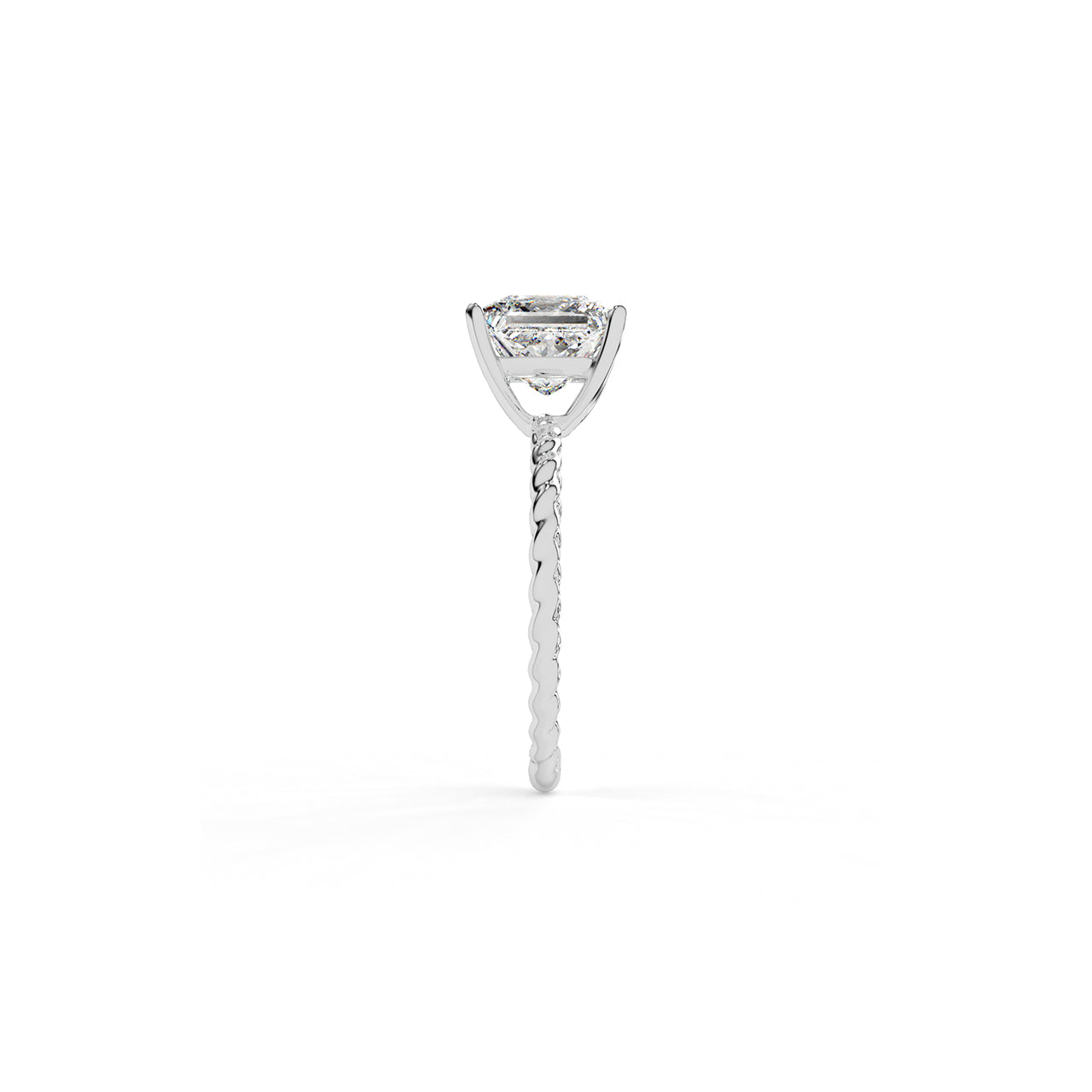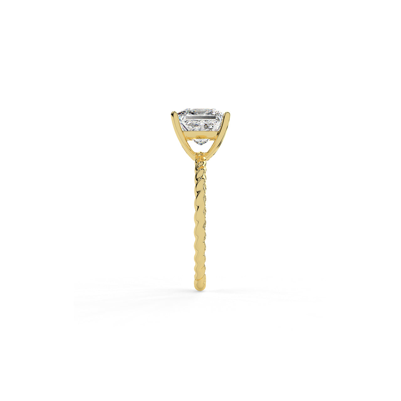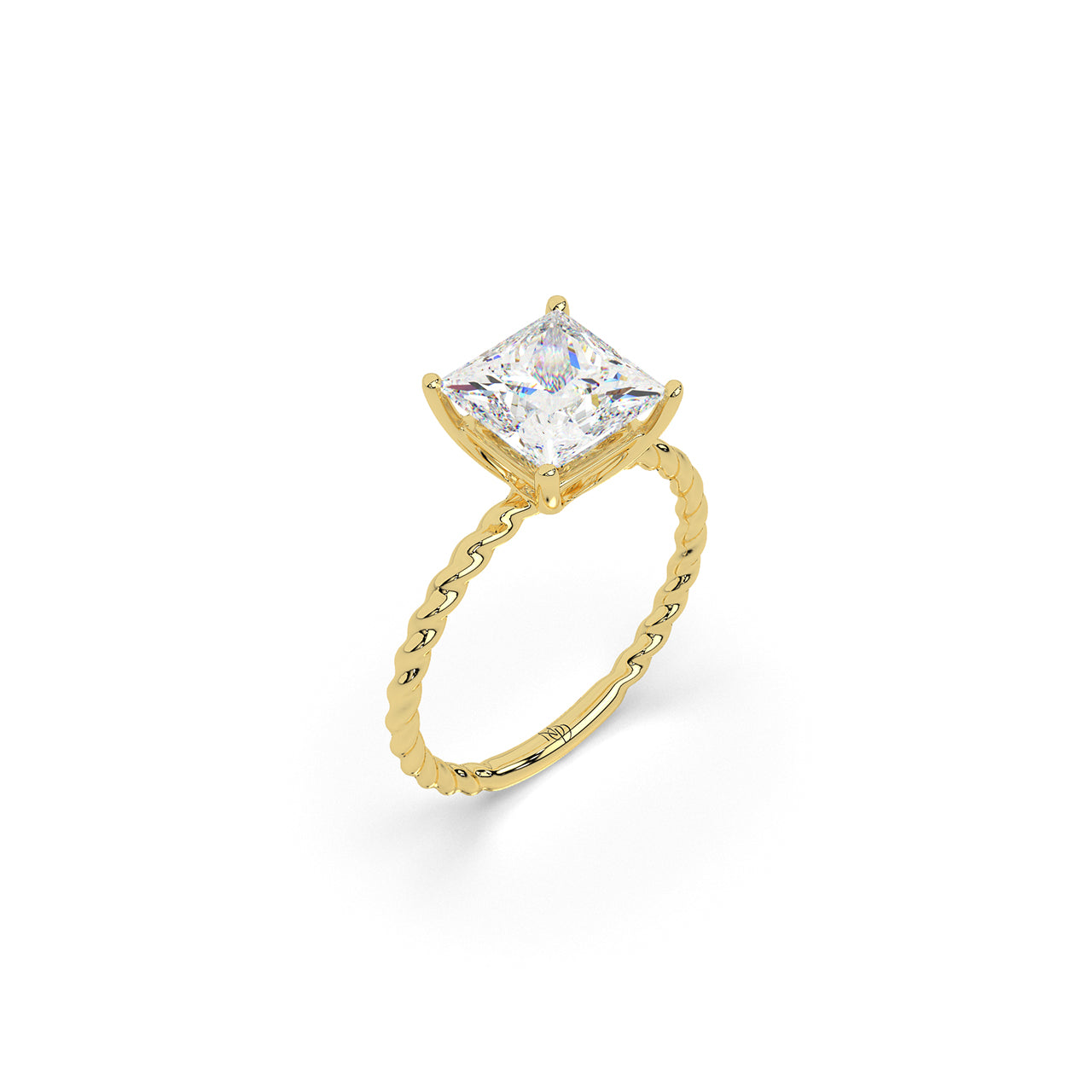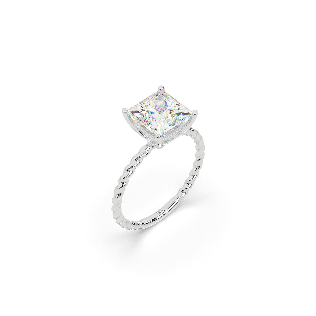 Modern elegance meets sculptural charm in this solitaire ring. A stunning princess-cut diamond sits at the center, it...