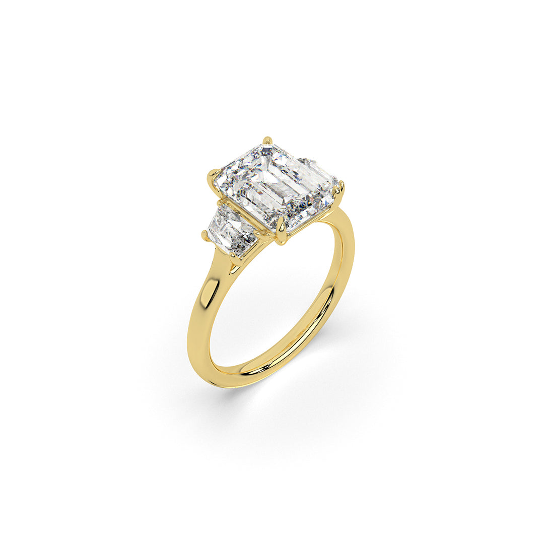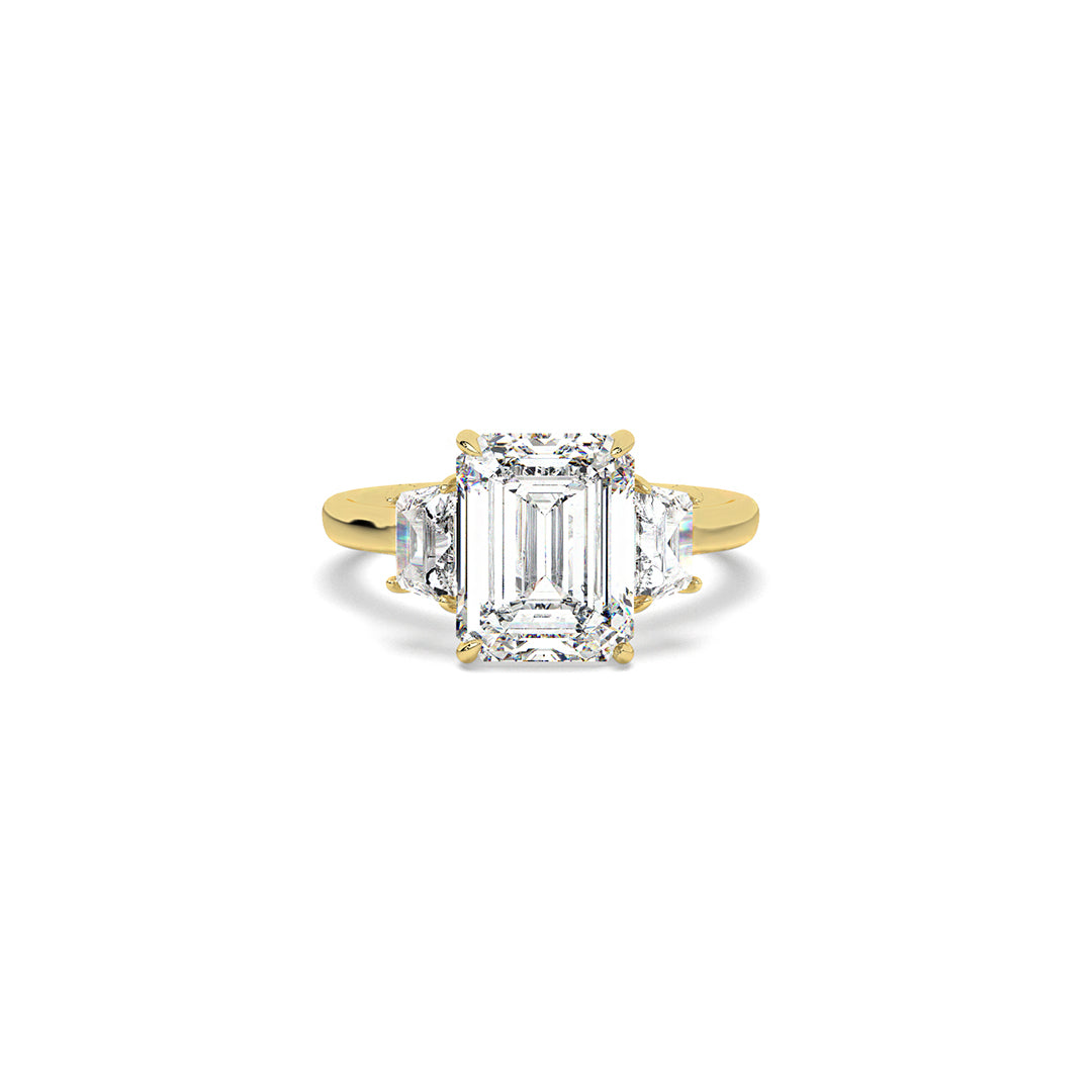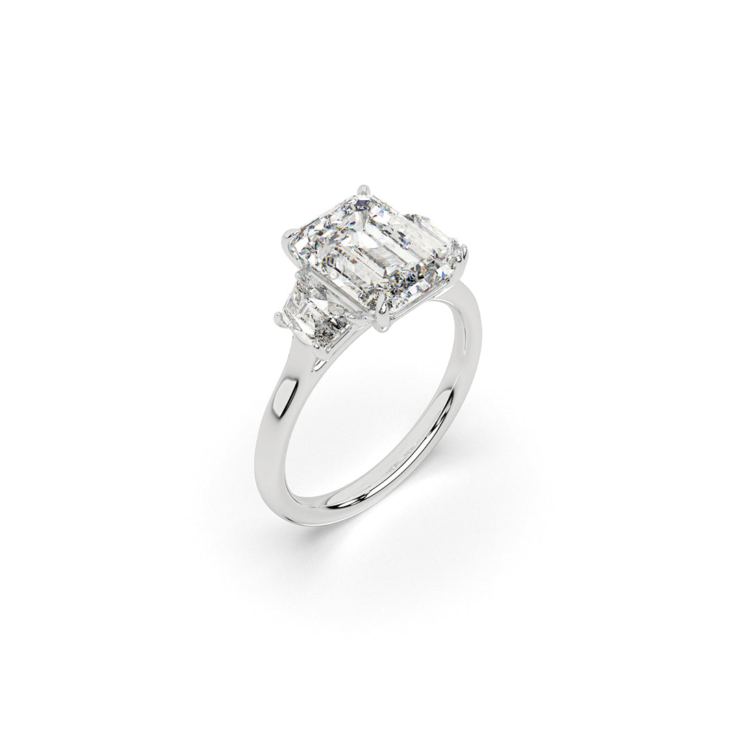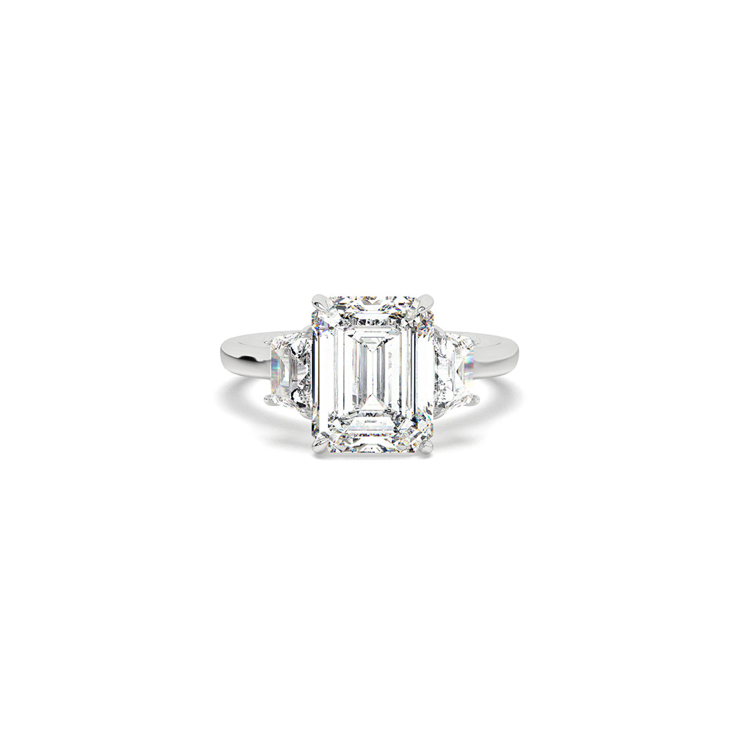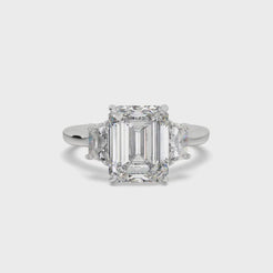 A bold declaration of refinement, this ring exudes confidence and grandeur. Anchored by a striking 2.56 Ct emerald-cu...
