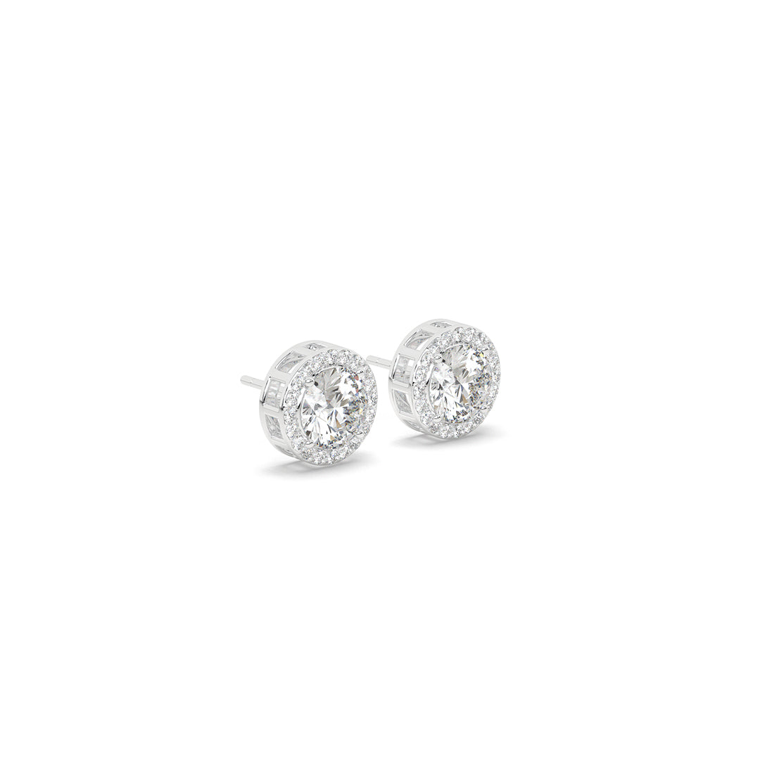 Round brilliant diamonds radiate from a micropave halo, capturing a gentle luminosity around each ear. A flawless fusion of soft corners and dazzling micro-brilliance, embodying understated grandeur.
