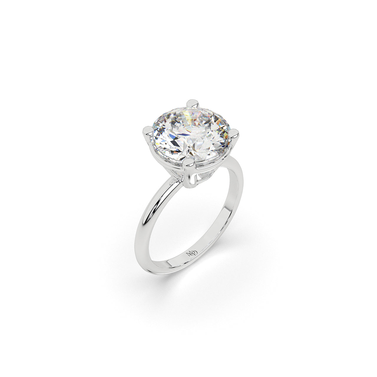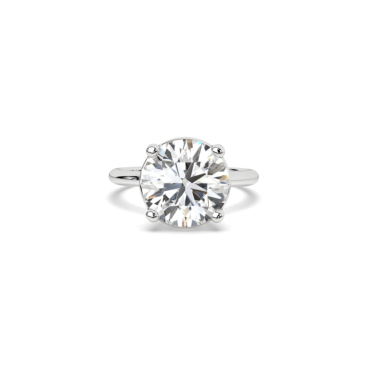 Striking in its simplicity, this ring showcases a brilliant 4 carat round diamond set in a sleek solitaire design. Th...