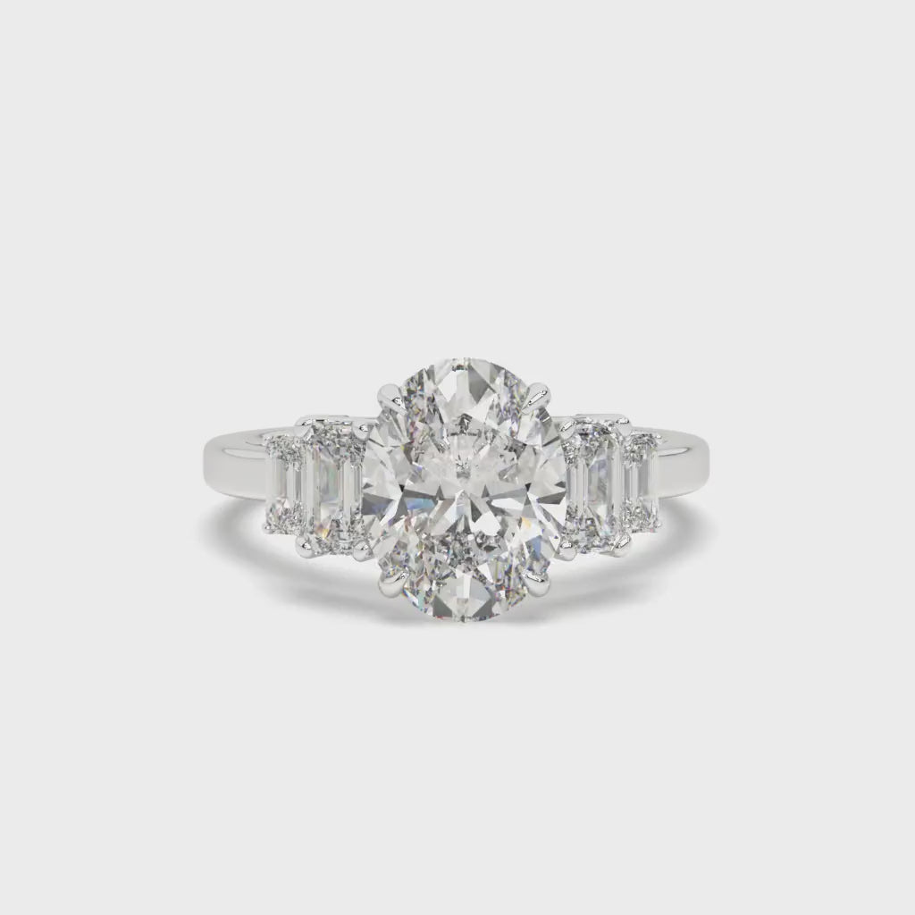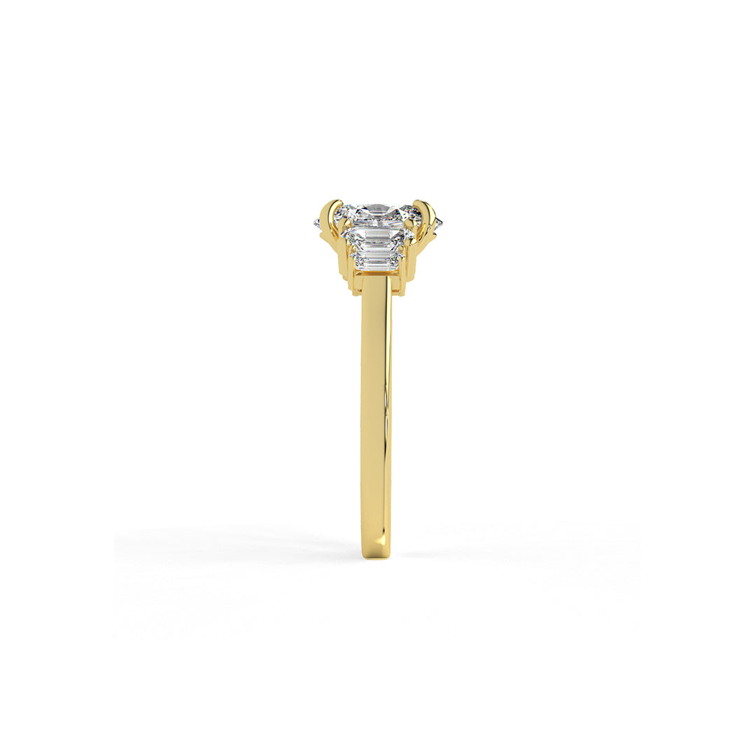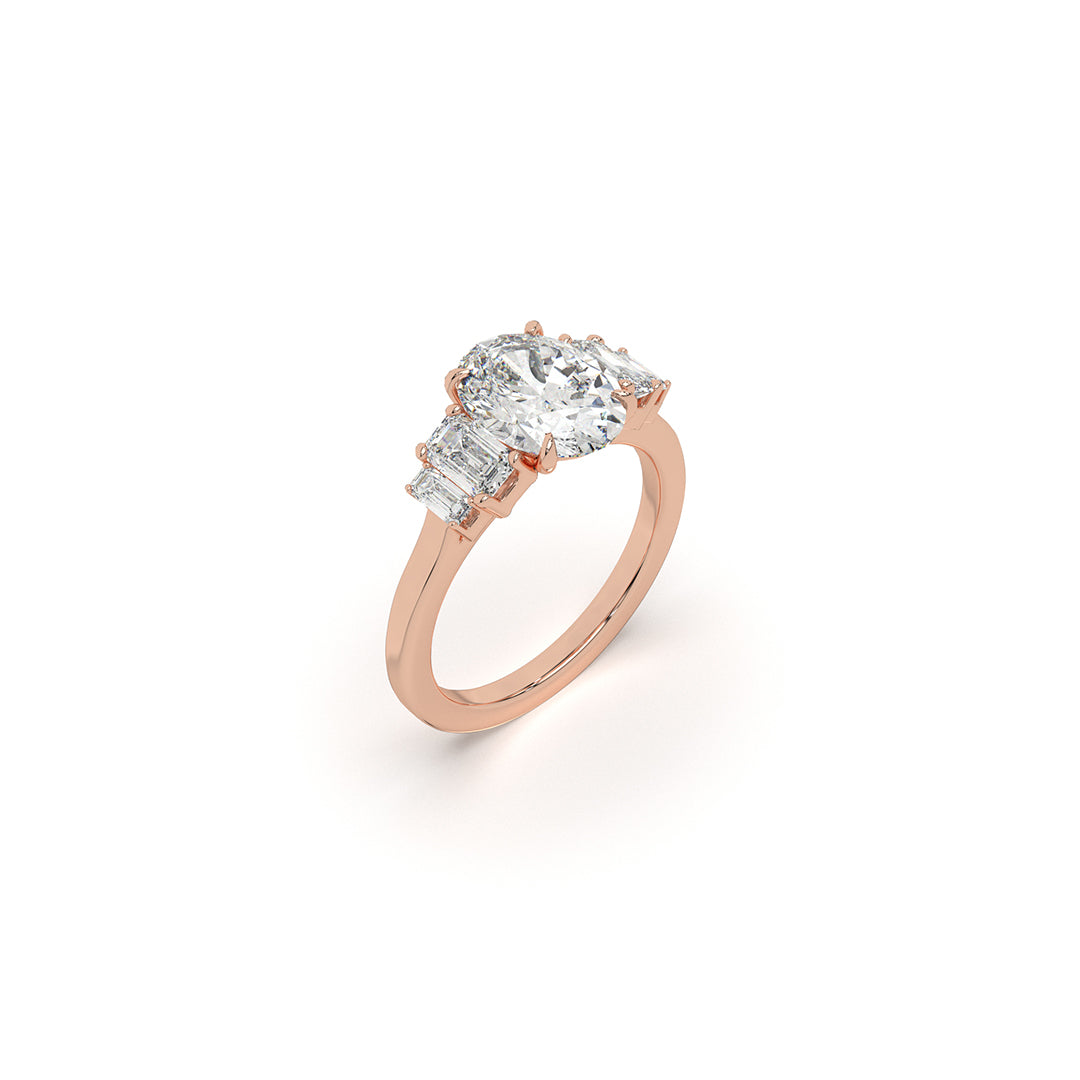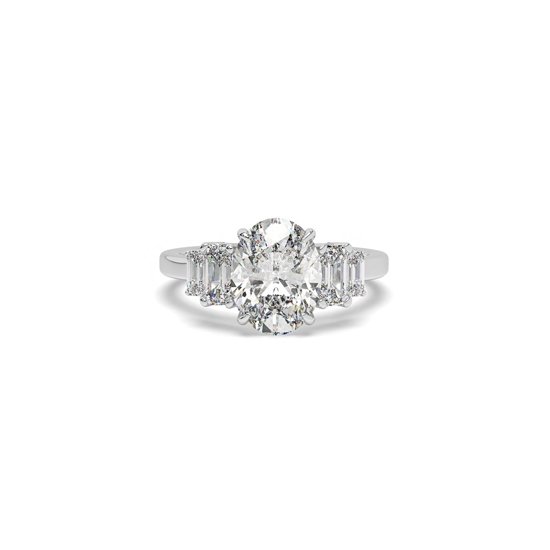 Bold, radiant, and effortlessly chic, this ring is the ultimate power statement. Featuring a striking 1.67 ct oval-cut diamond at its core, flanked by perfectly stacked emerald-cut diamonds, this design merges vintage glam with modern edge. The structured yet fluid silhouette delivers maximum brilliance, making it a go-to for those who command attention. Crafted for trendsetters who embrace luxury with confidence, this ring is more than jewelry—it’s an icon in the making.