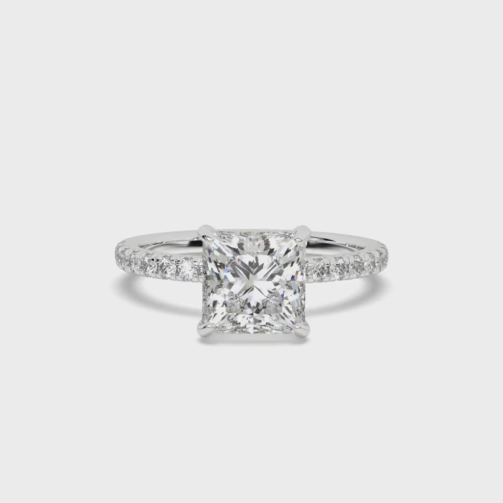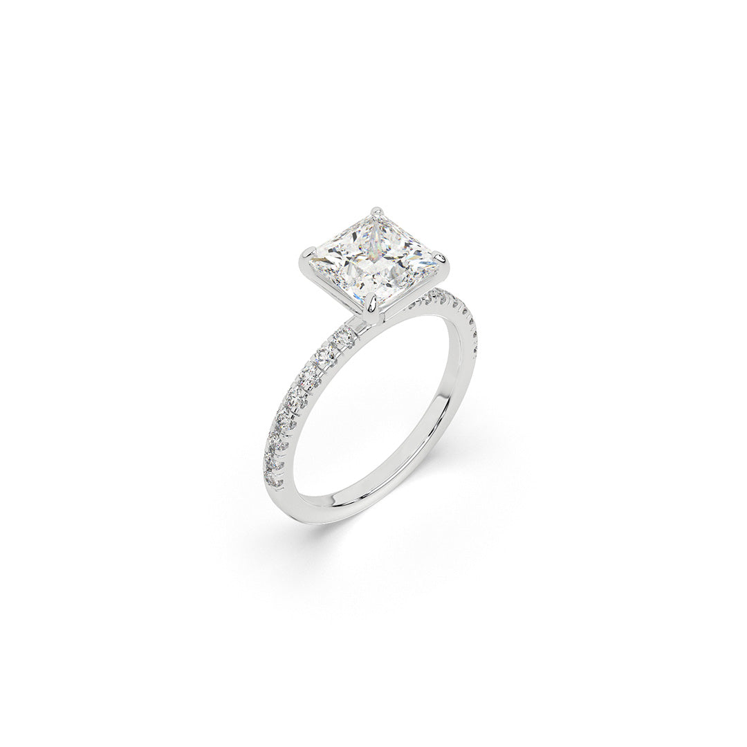 Timeless elegance with a modern edge. Featuring a captivating 1.72 ct princess-cut diamond as its centerpiece, this d...