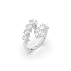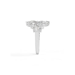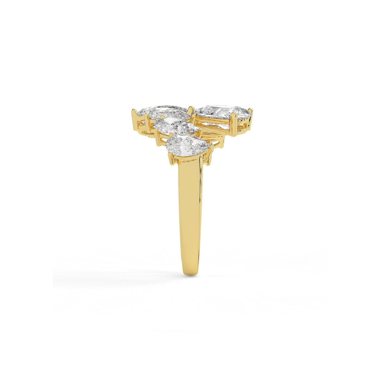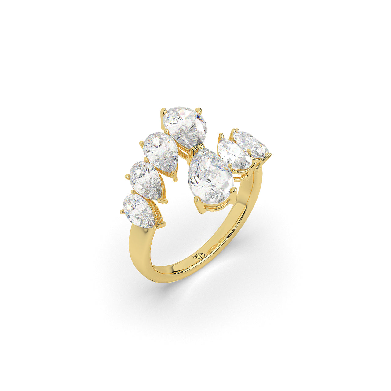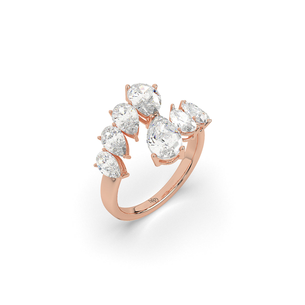 An open band bursts with a graduated sequence of pear-shaped diamonds, rising like twin arcs of flickering flame. Thi...
