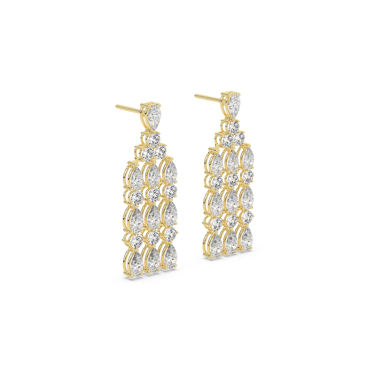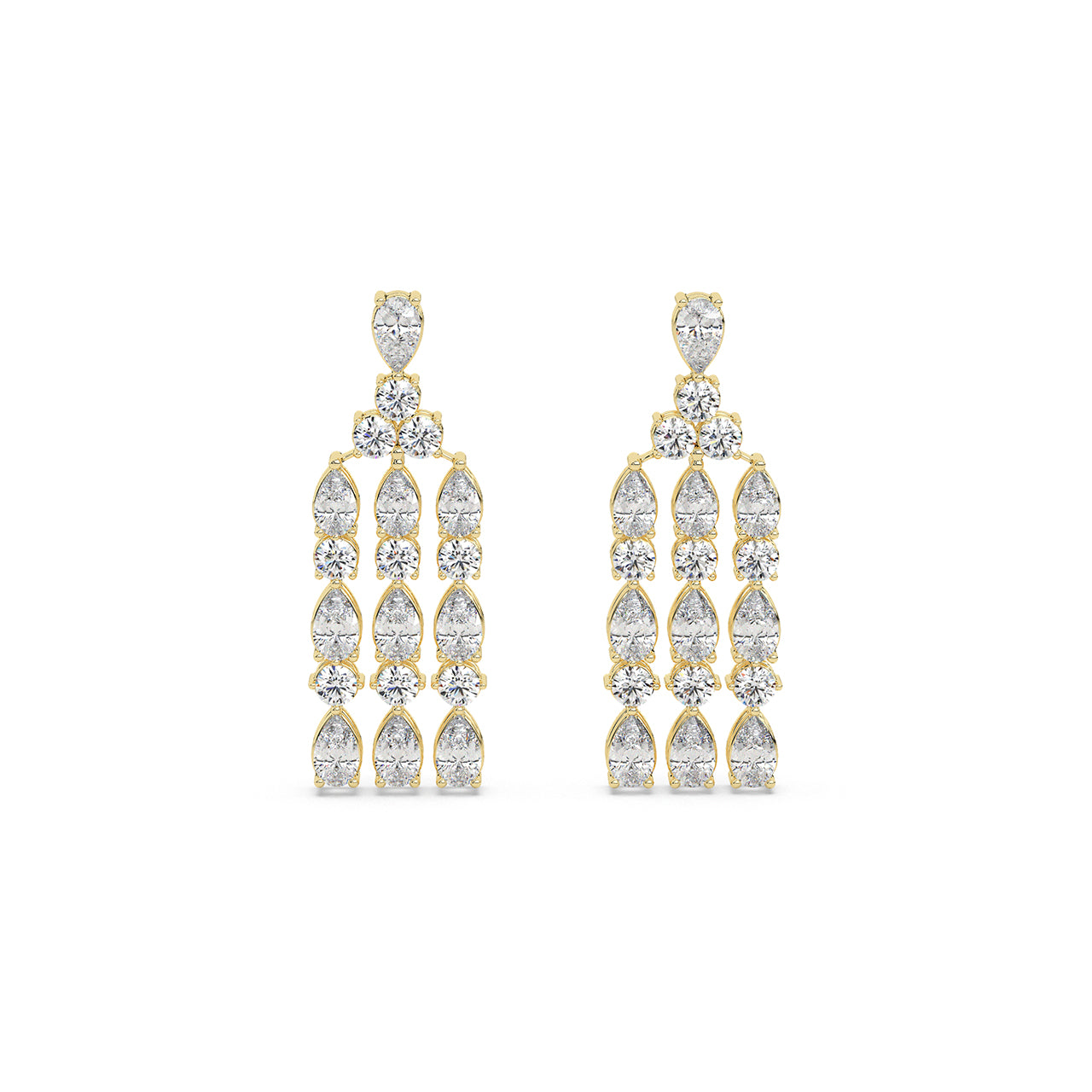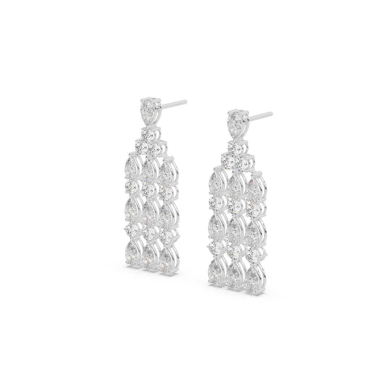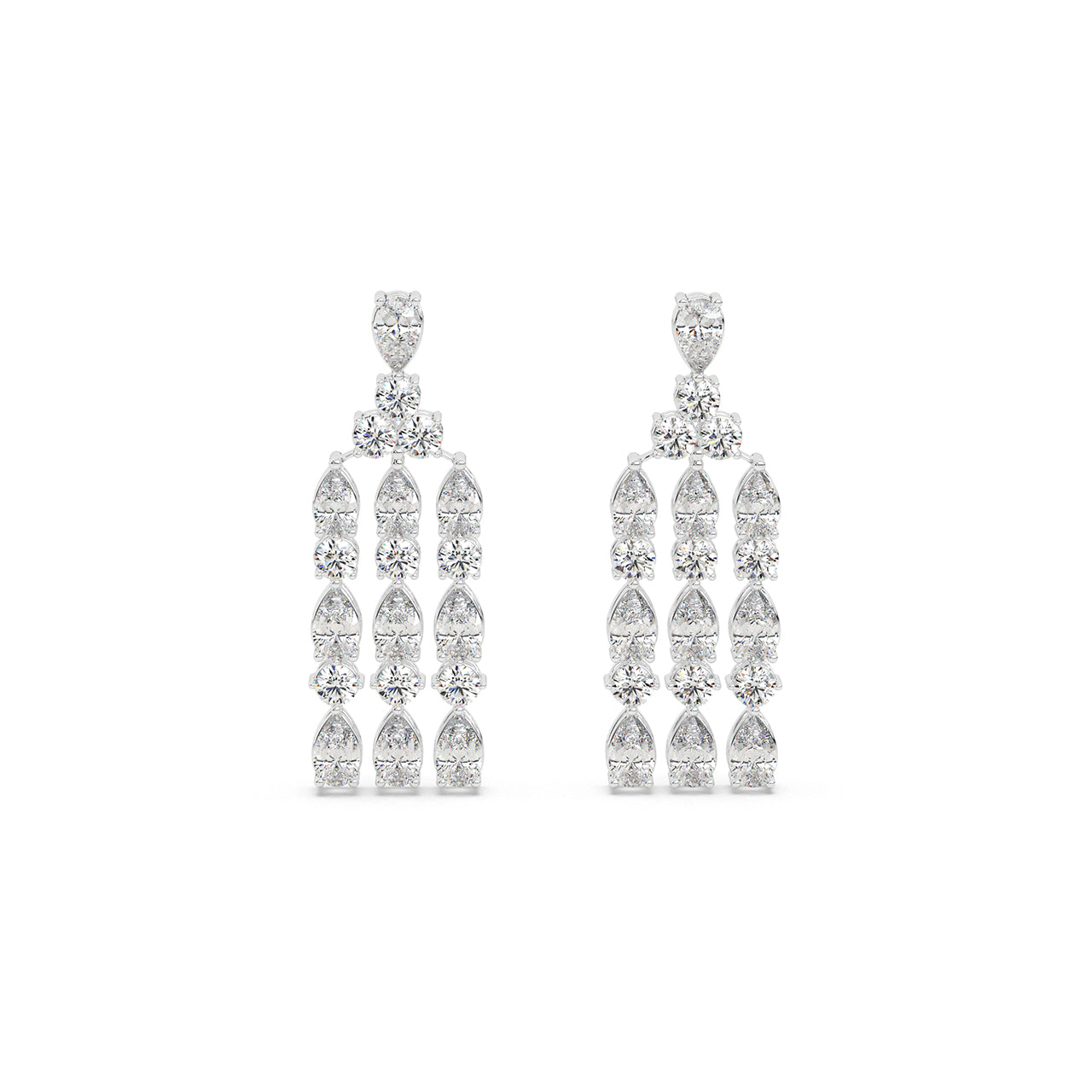 Drama meets refinement.The Cascade Royale Earrings feature a tiered interplay of pear and round-cut lab-grown diamond...