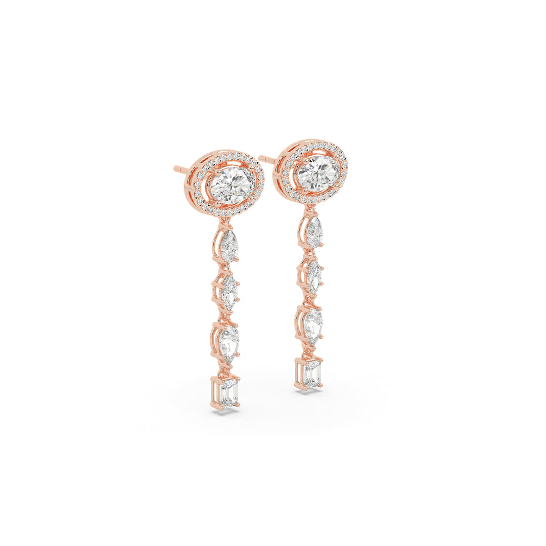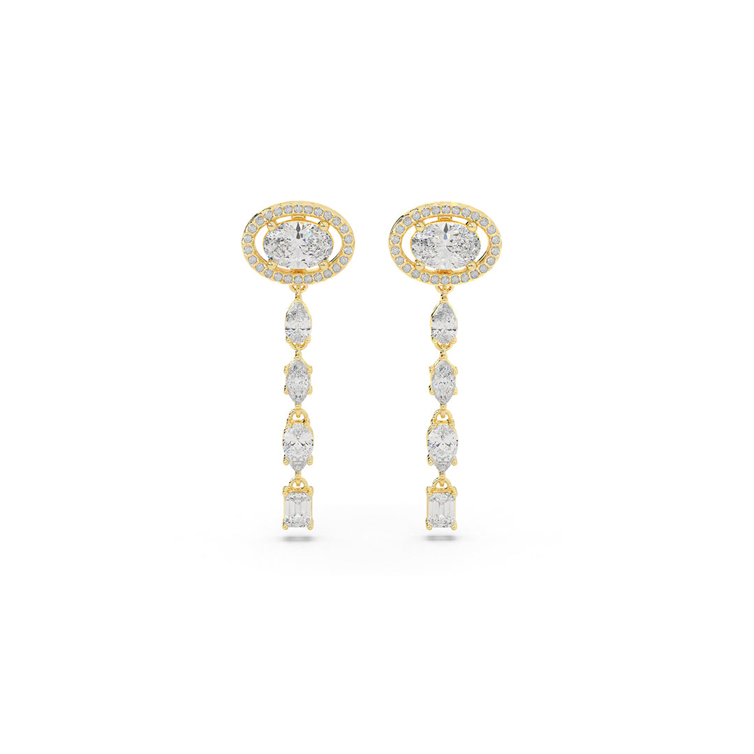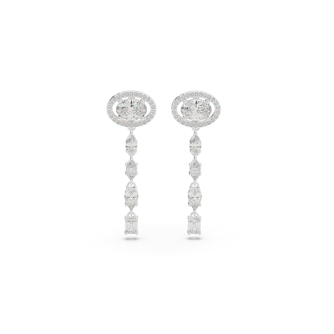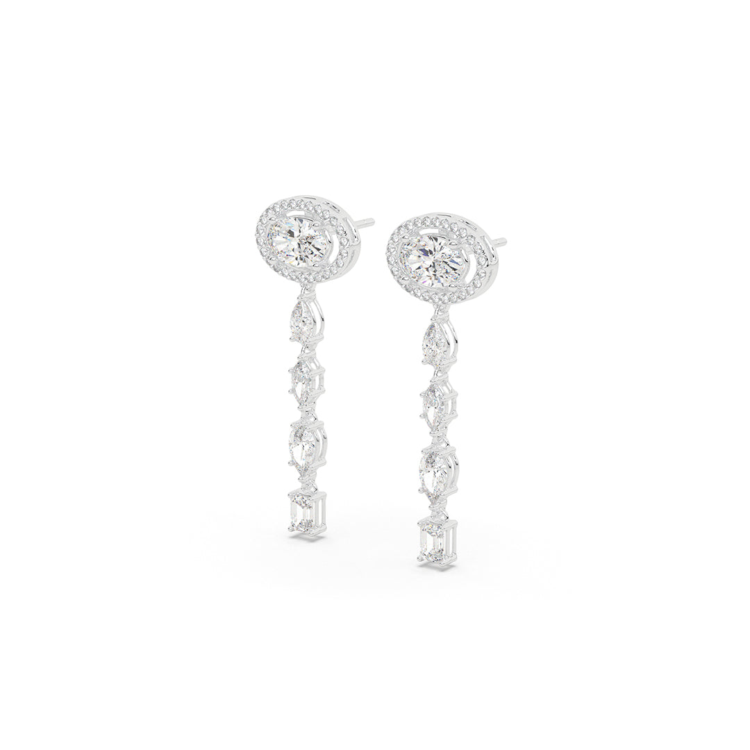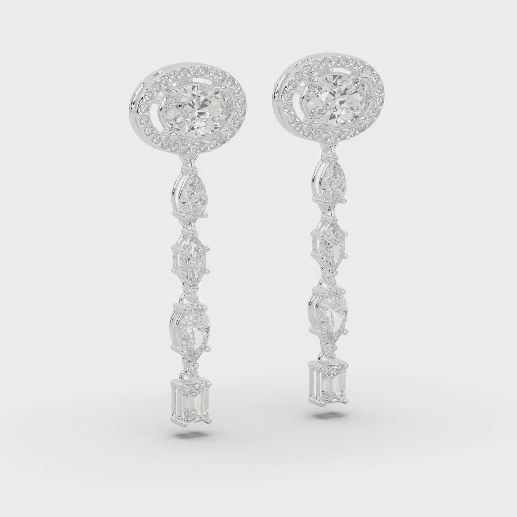 Sleek geometric lines formed by oval, pear, emerald & round diamonds create vertical columns of light. Contempora...