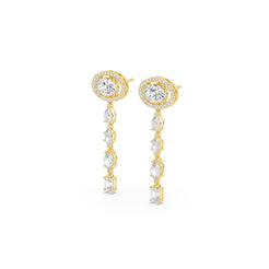 Sleek geometric lines formed by oval, pear, emerald & round diamonds create vertical columns of light. Contemporary architecture meets dazzling brilliance in this striking design.