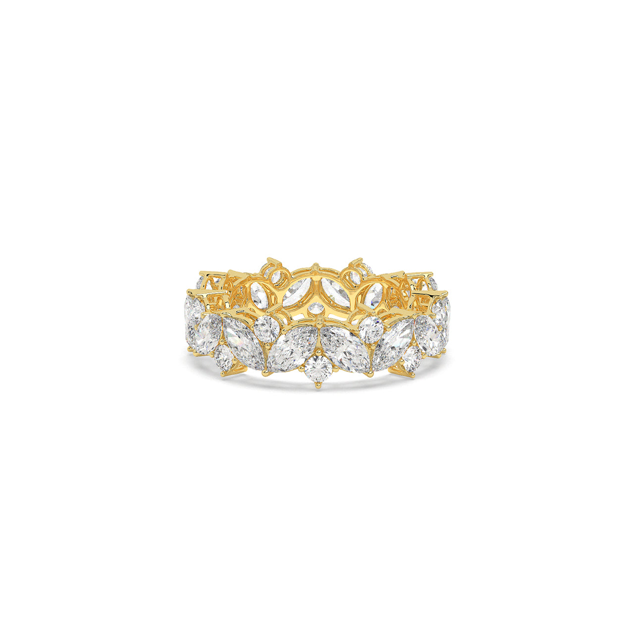 The Elysian Petal ring is a poetic interplay of shape and brilliance. Featuring alternating marquise-cut and round br...