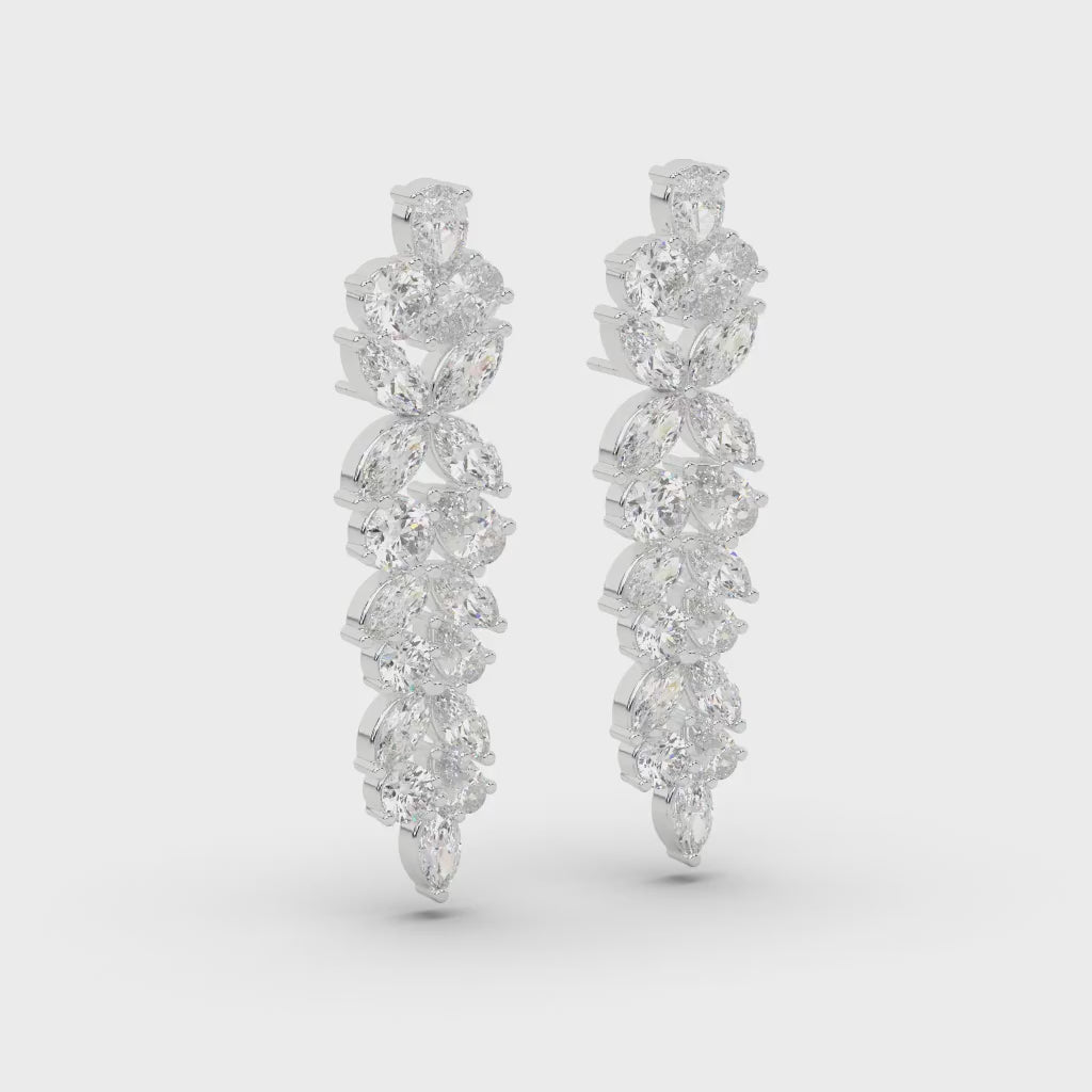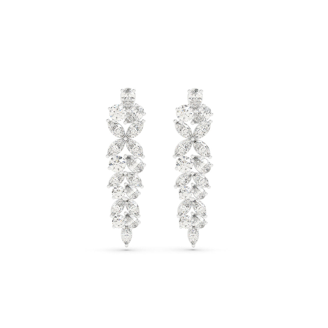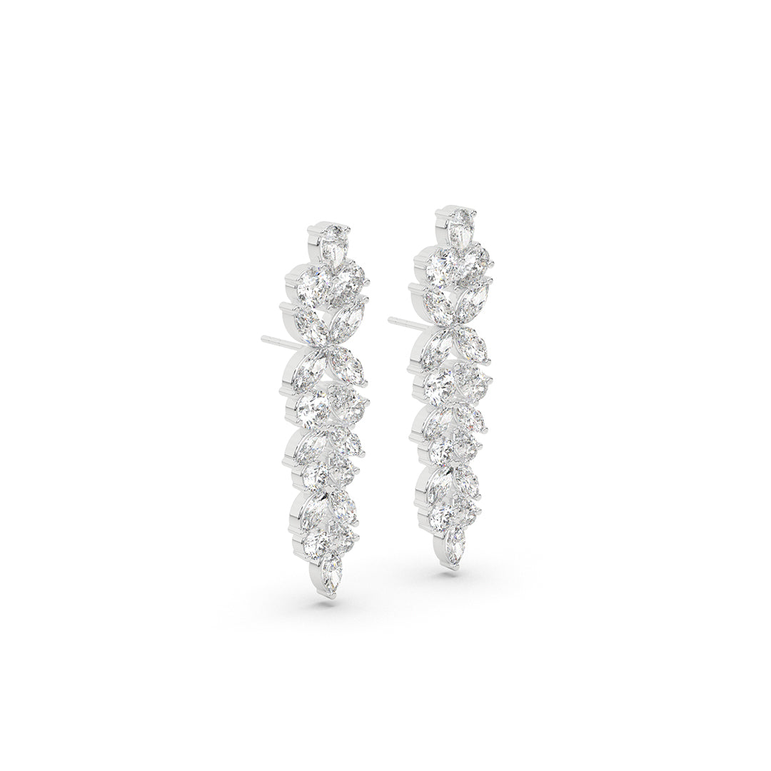 Linear drops punctuated by diamond clusters, evoking icicles catching the morning sun. Crisp and luminous, they offer a frosty nod to modern minimalism