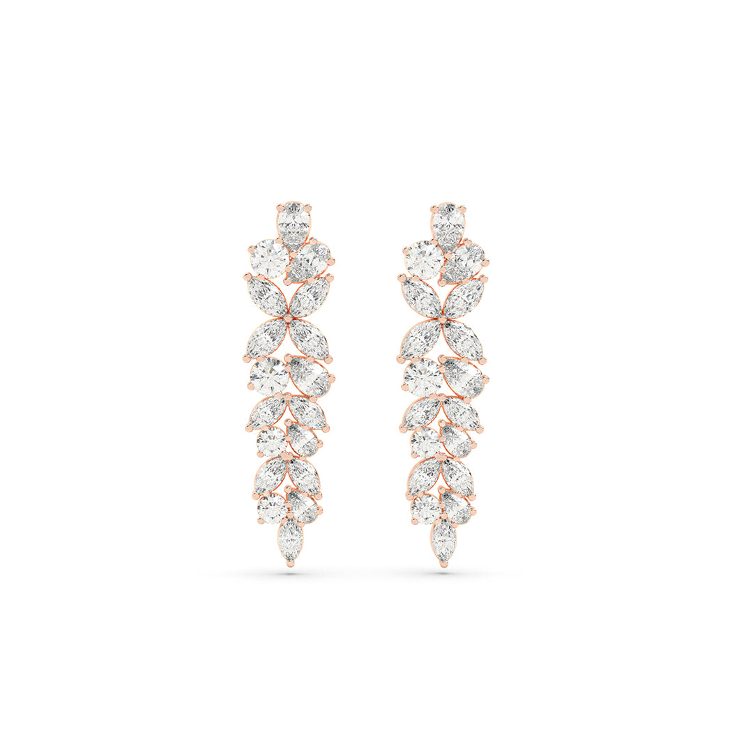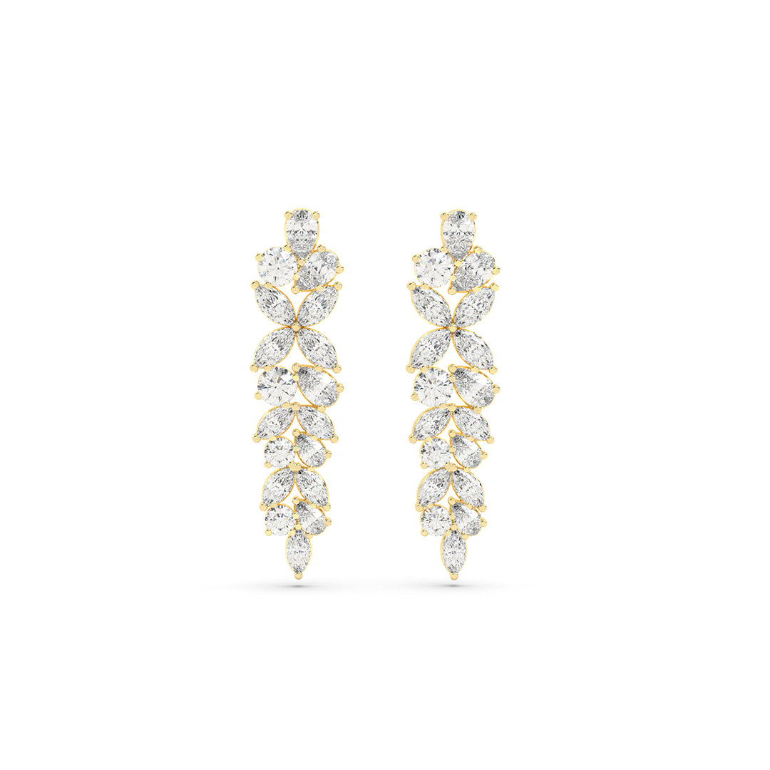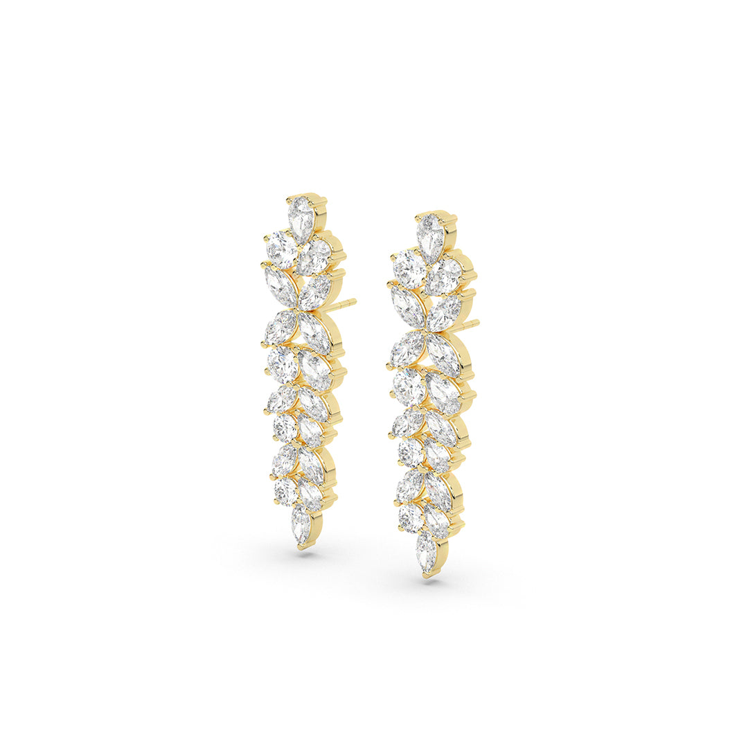 Linear drops punctuated by diamond clusters, evoking icicles catching the morning sun. Crisp and luminous, they offer a frosty nod to modern minimalism