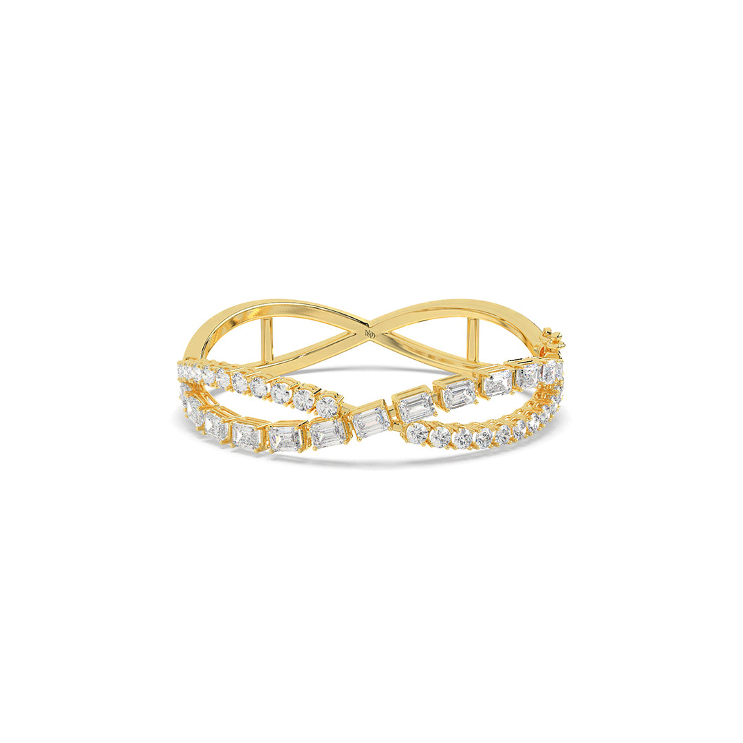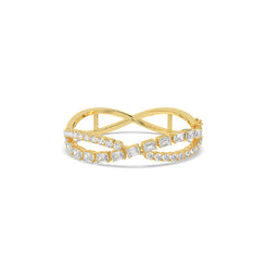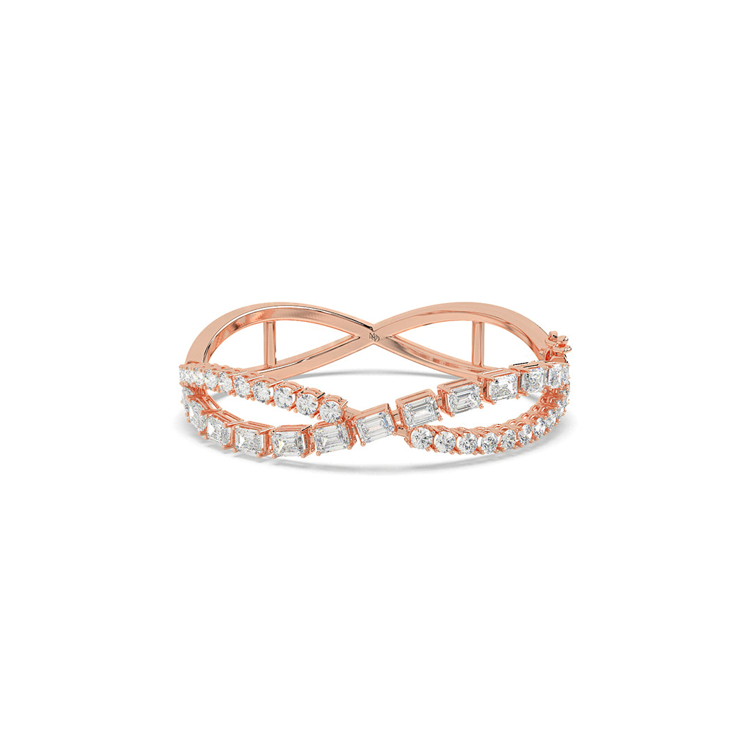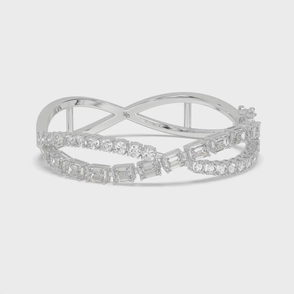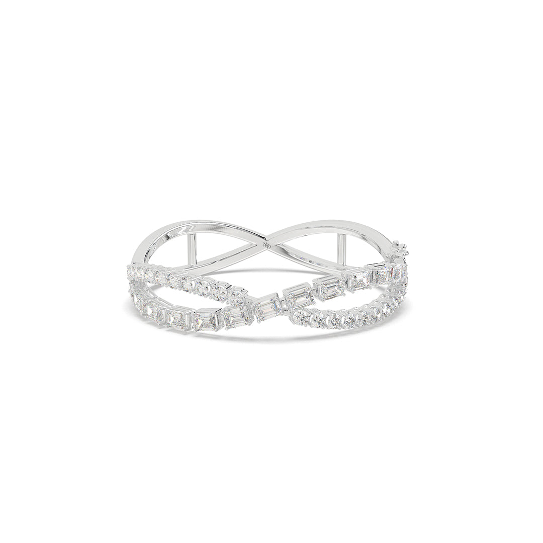 Sculptural, interwoven diamond paths form a graceful figure-eight silhouette. A modern statement of endless light, bl...