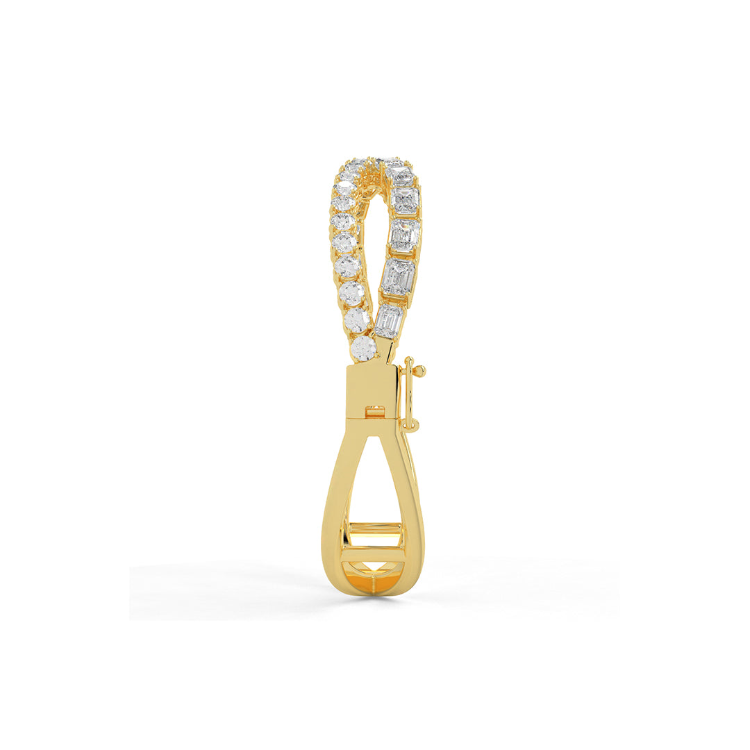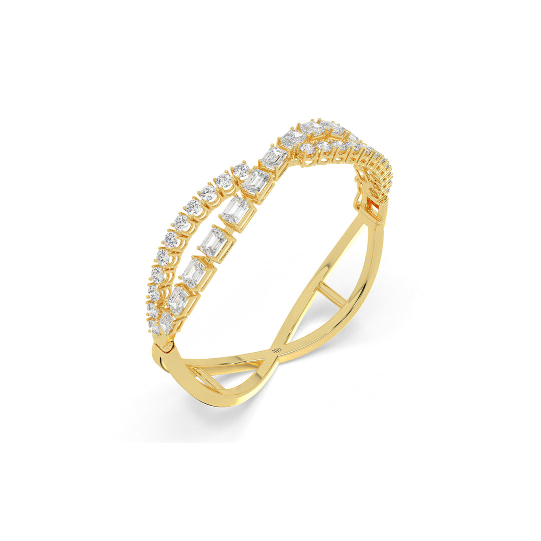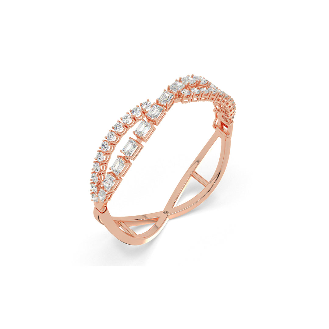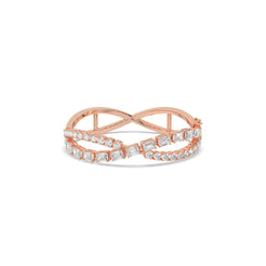 Sculptural, interwoven diamond paths form a graceful figure-eight silhouette. A modern statement of endless light, bl...