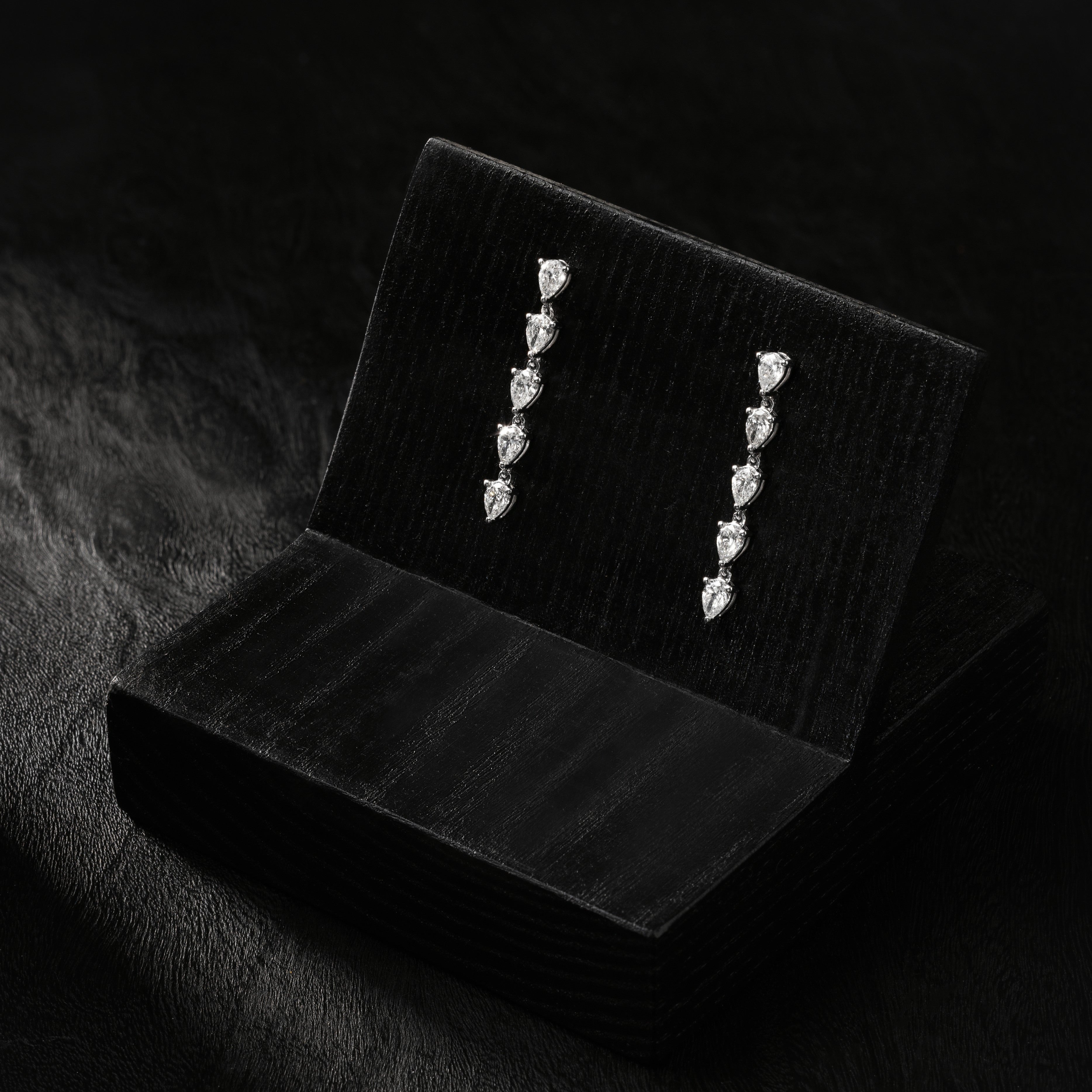 Celebrated pear-shaped diamonds sway in delicate arcs, like moonlit dancers moving in graceful synchronicity.