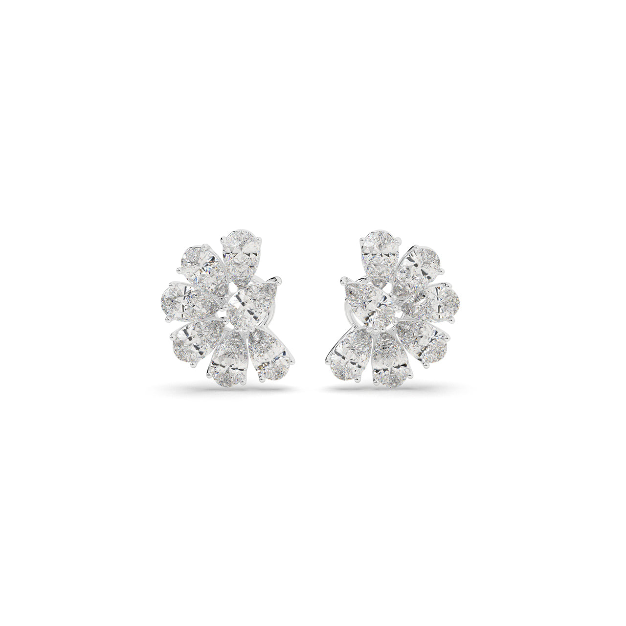 The Petalburst Earrings are a radiant cluster of pear-cut lab-grown diamonds, arranged like unfolding petals in full bloom. Bold yet feminine, each earring captures the poetry of a flower frozen in light — delicate in form, powerful in presence.