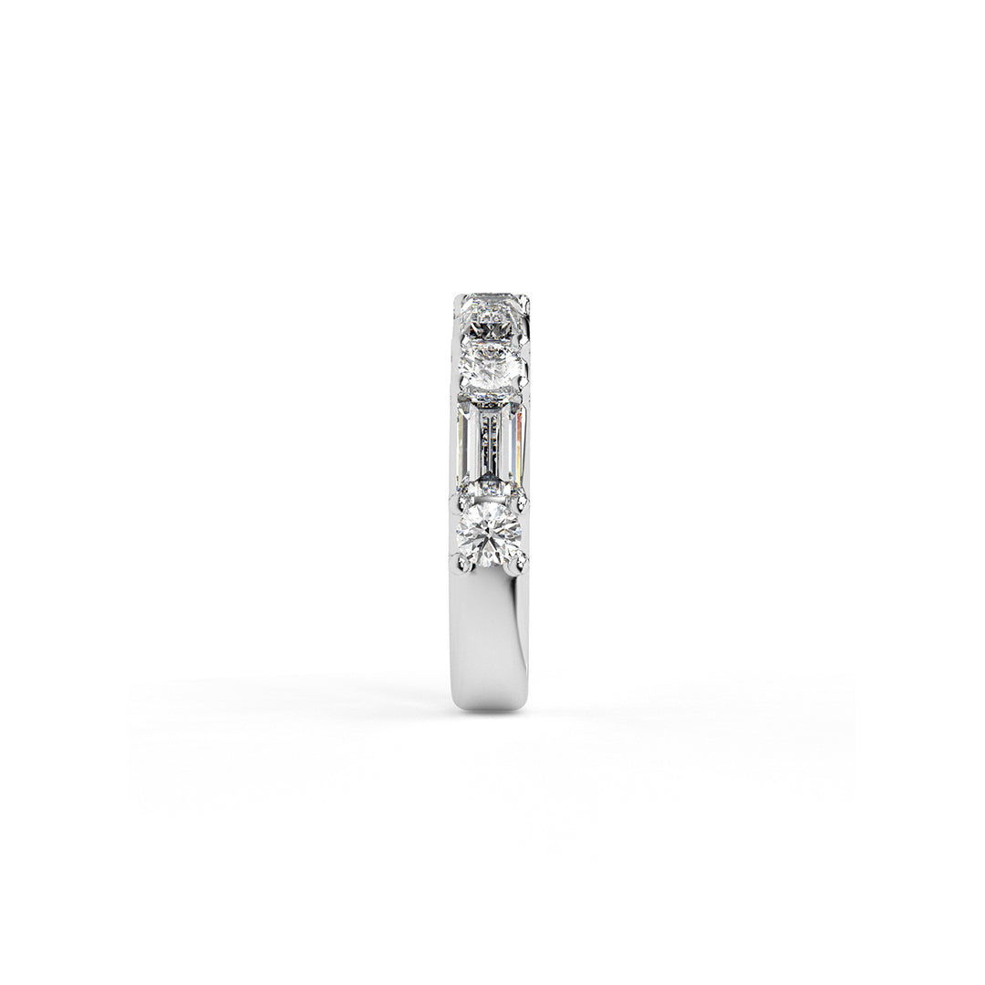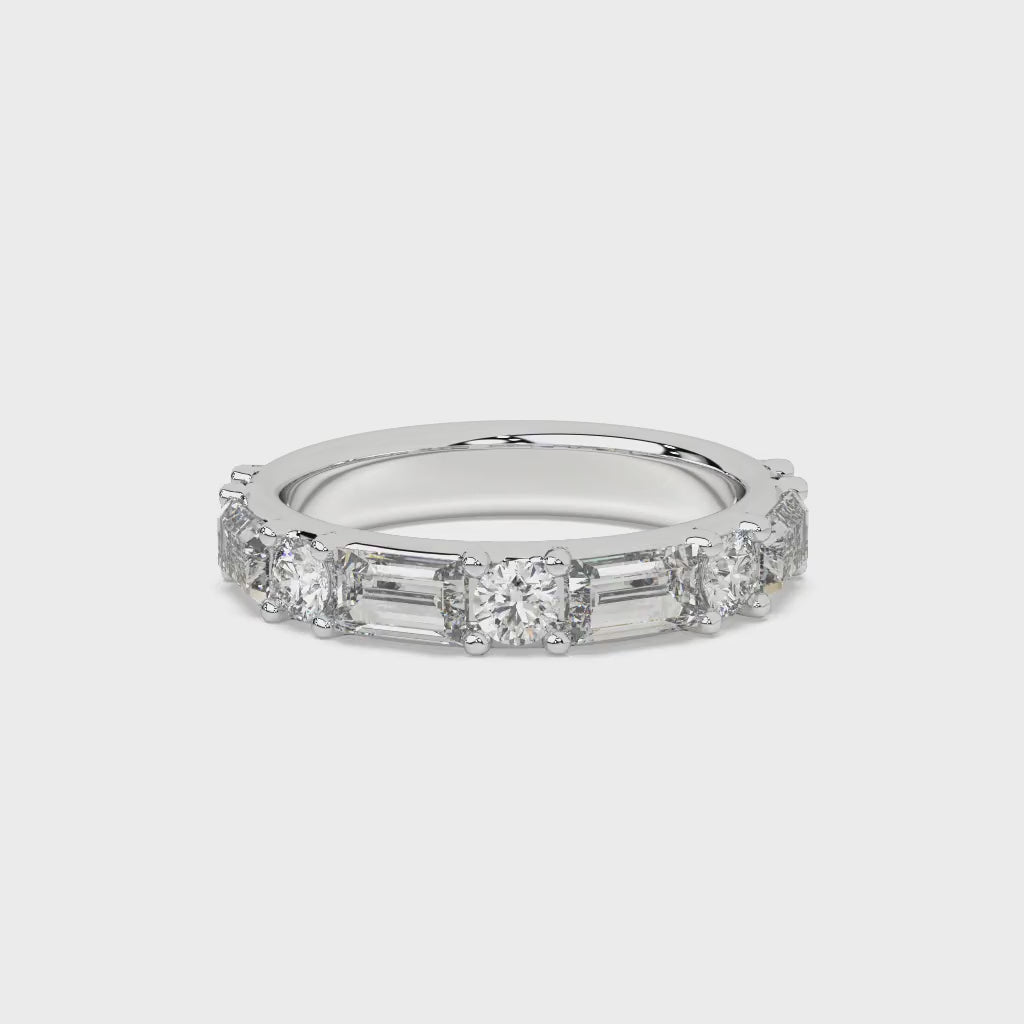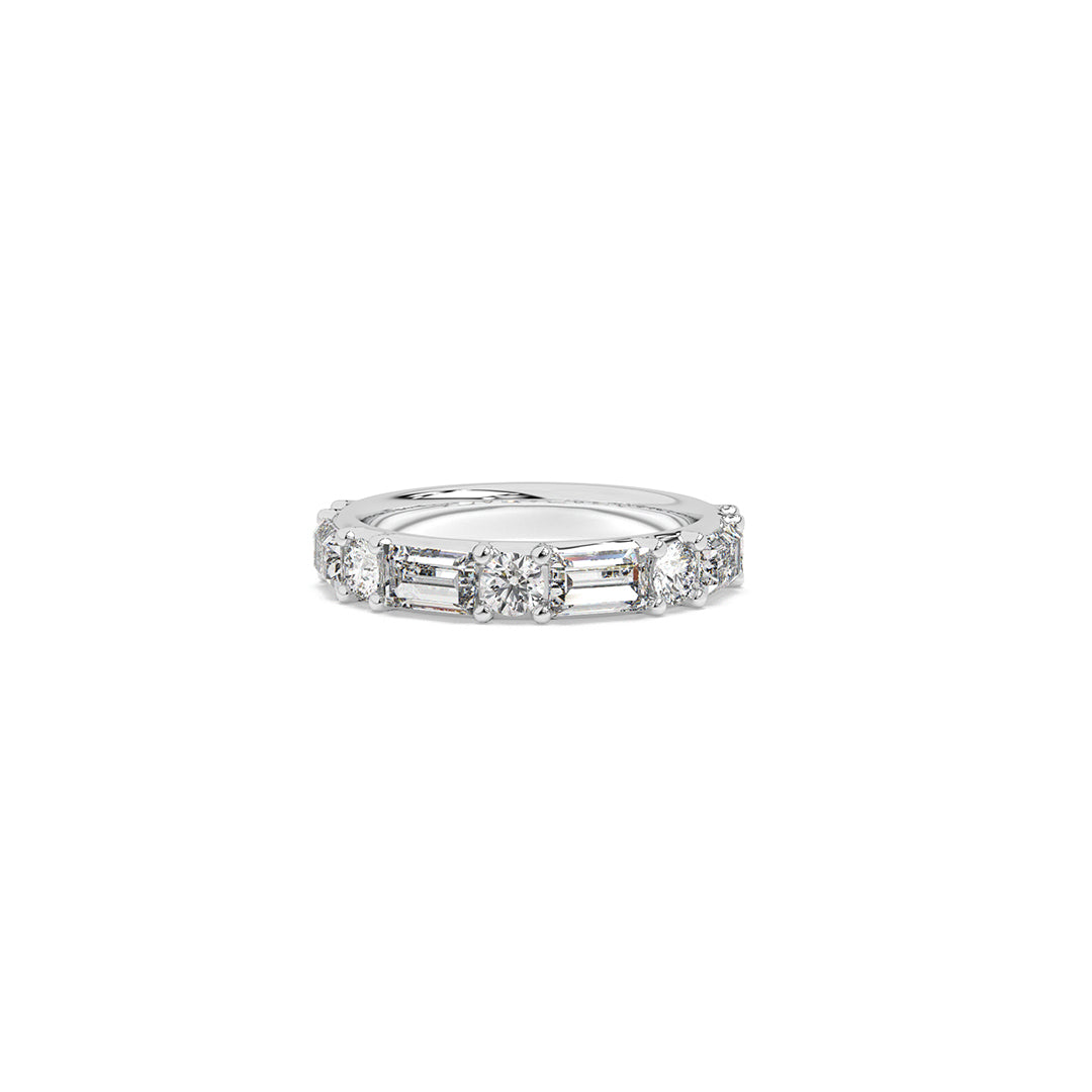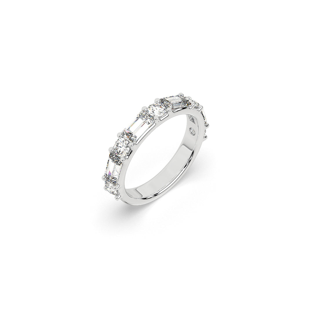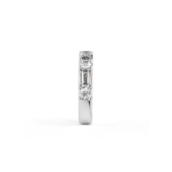 A seamless blend of sophistication and brilliance with alternating emerald-cut and round diamonds set in a timeless d...