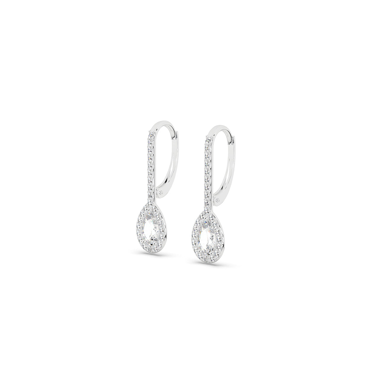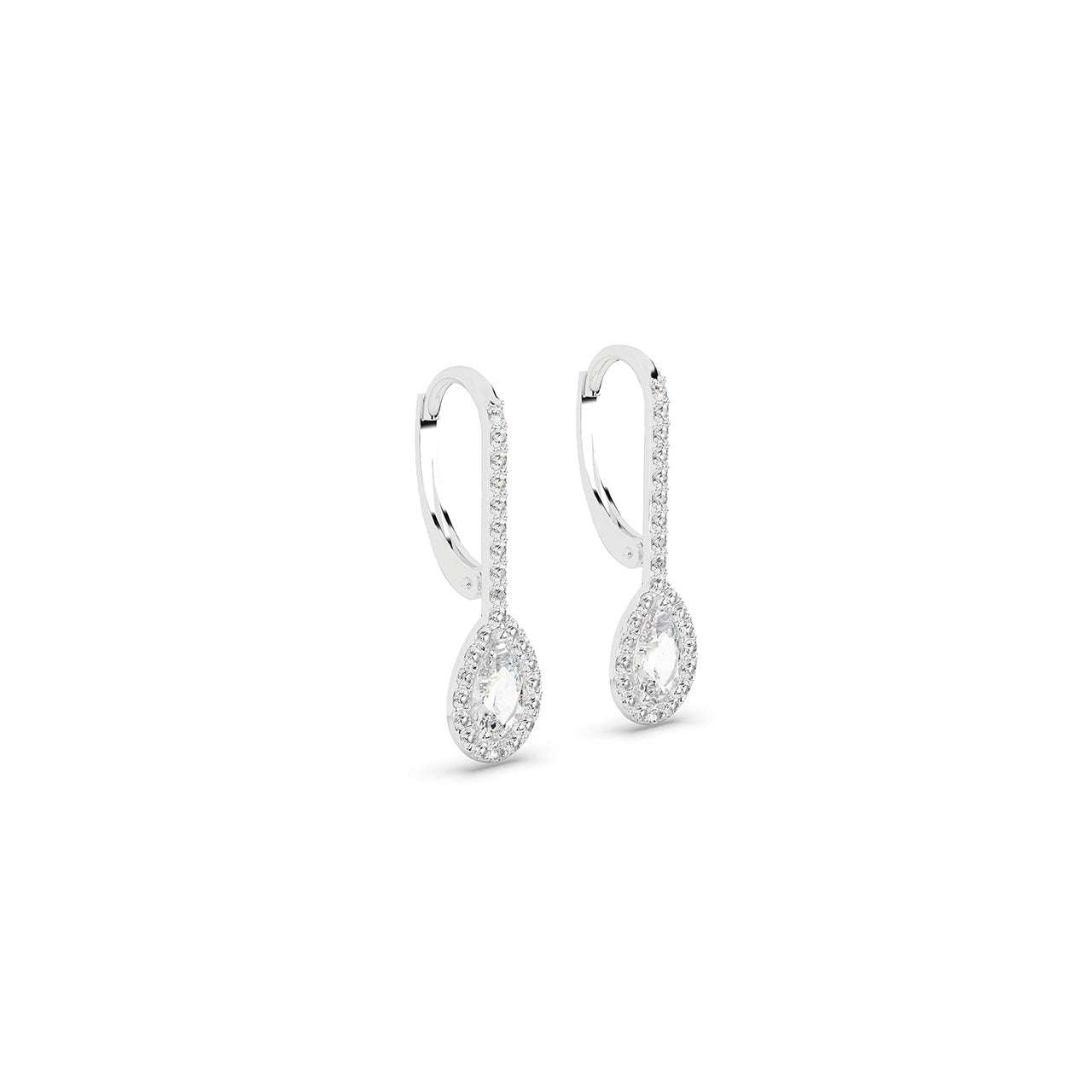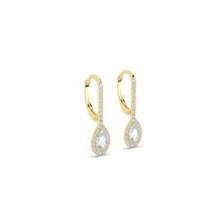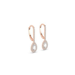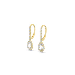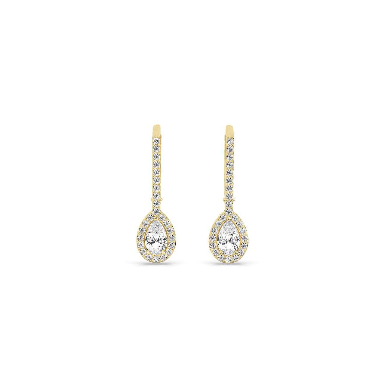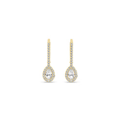Graceful and timeless, the Radiant Teardrop Diamond Earrings feature a classic drop design adorned with brilliant round-cut diamonds. At the center of each earring lies a pear-shaped diamond, beautifully encircled by a halo of sparkling stones. A vertical line of diamonds extends upward, adding extra brilliance and elegance to the design. Perfect for special occasions or adding a touch of sophistication to any look, these earrings offer a refined and luxurious finish.