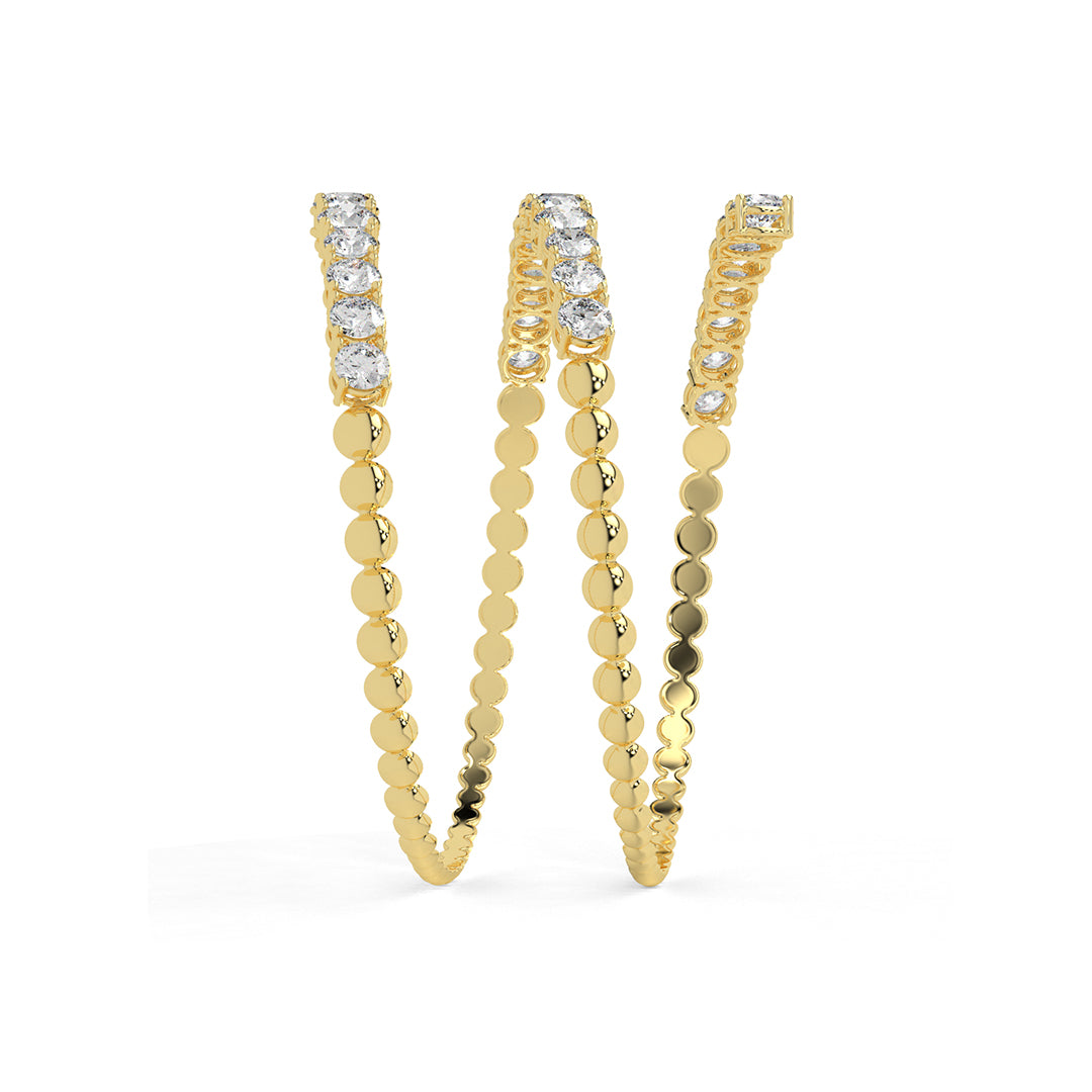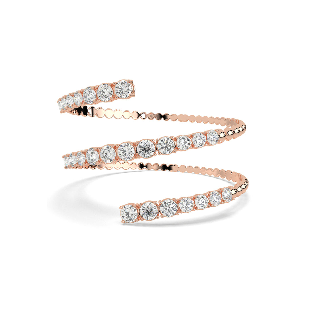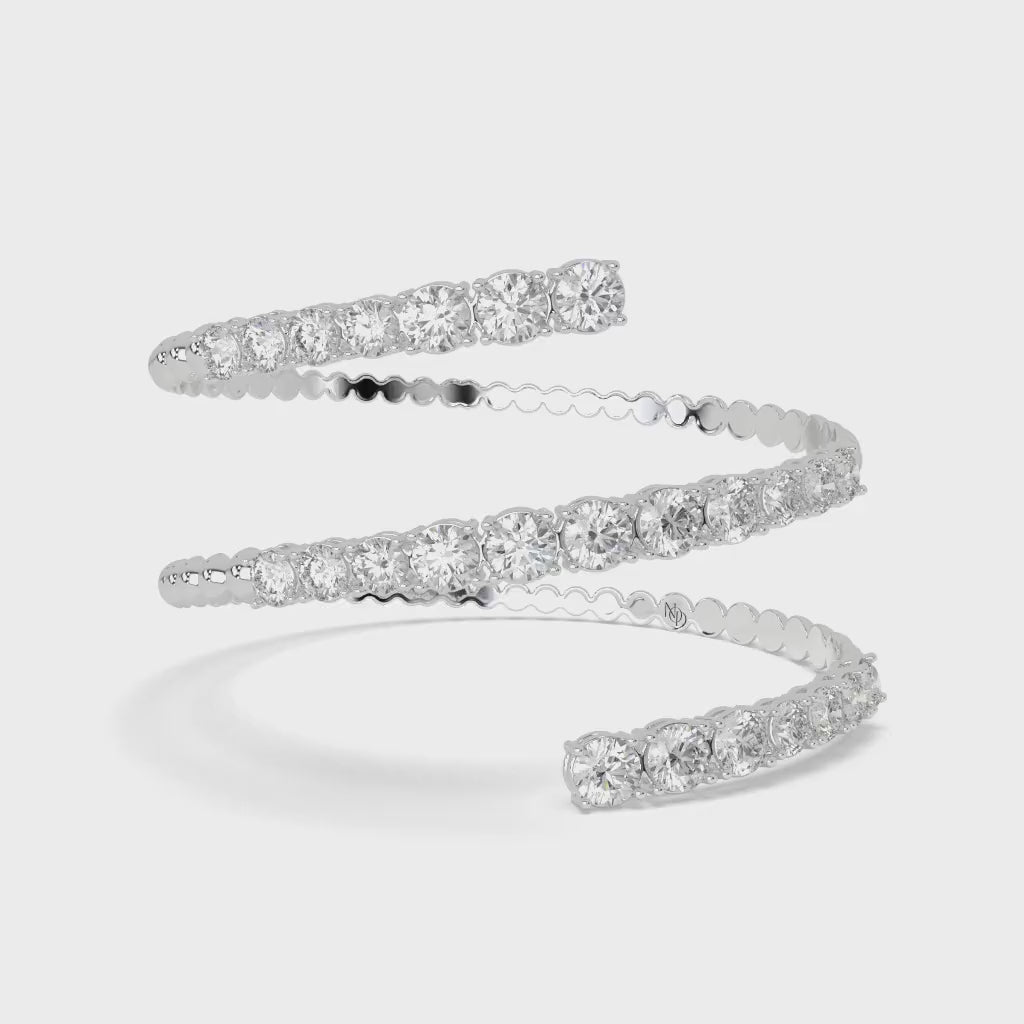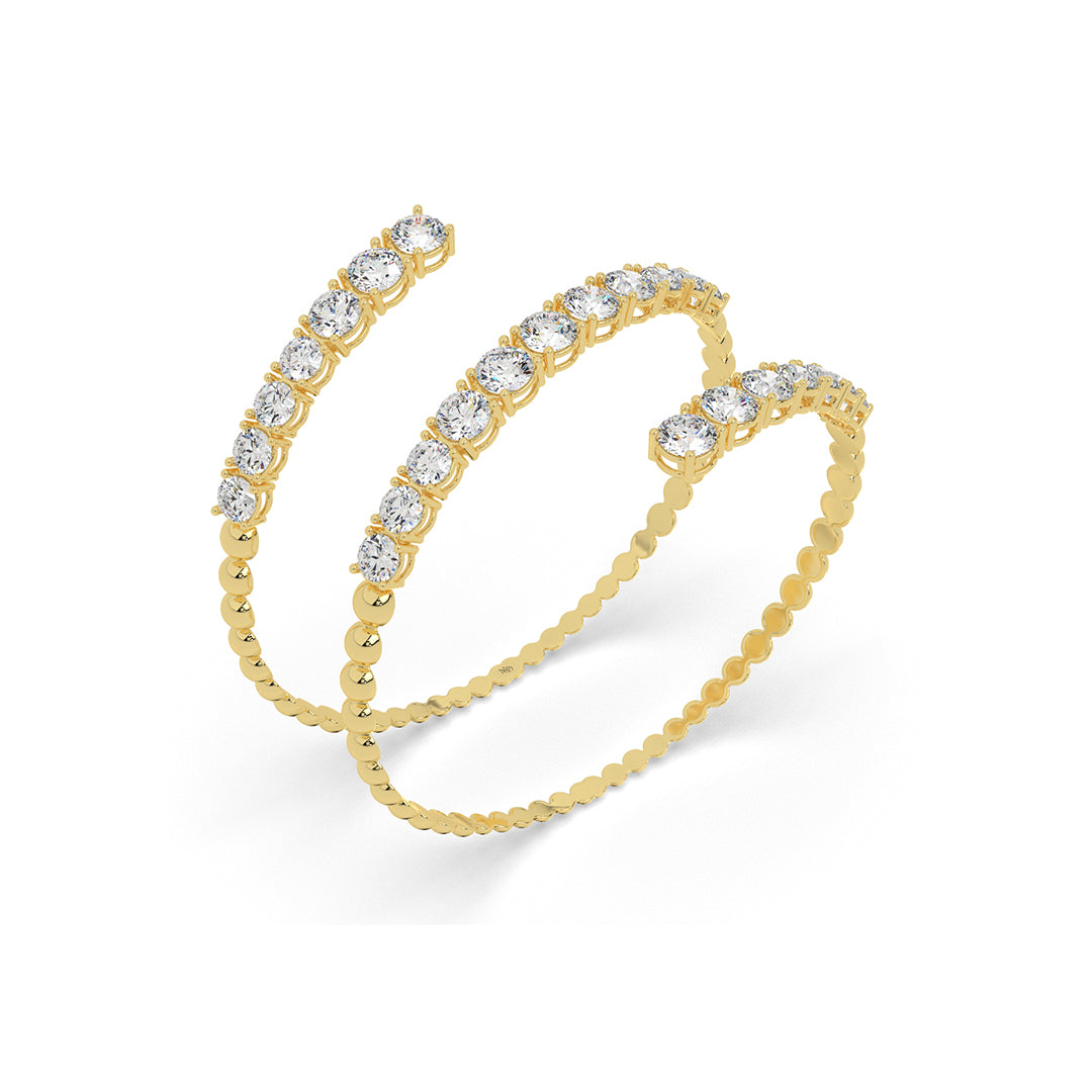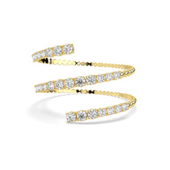 A sinuous coil of gold ablaze with a continuous diamond pathway. Bold yet refined, it echoes the elegant flow of a se...