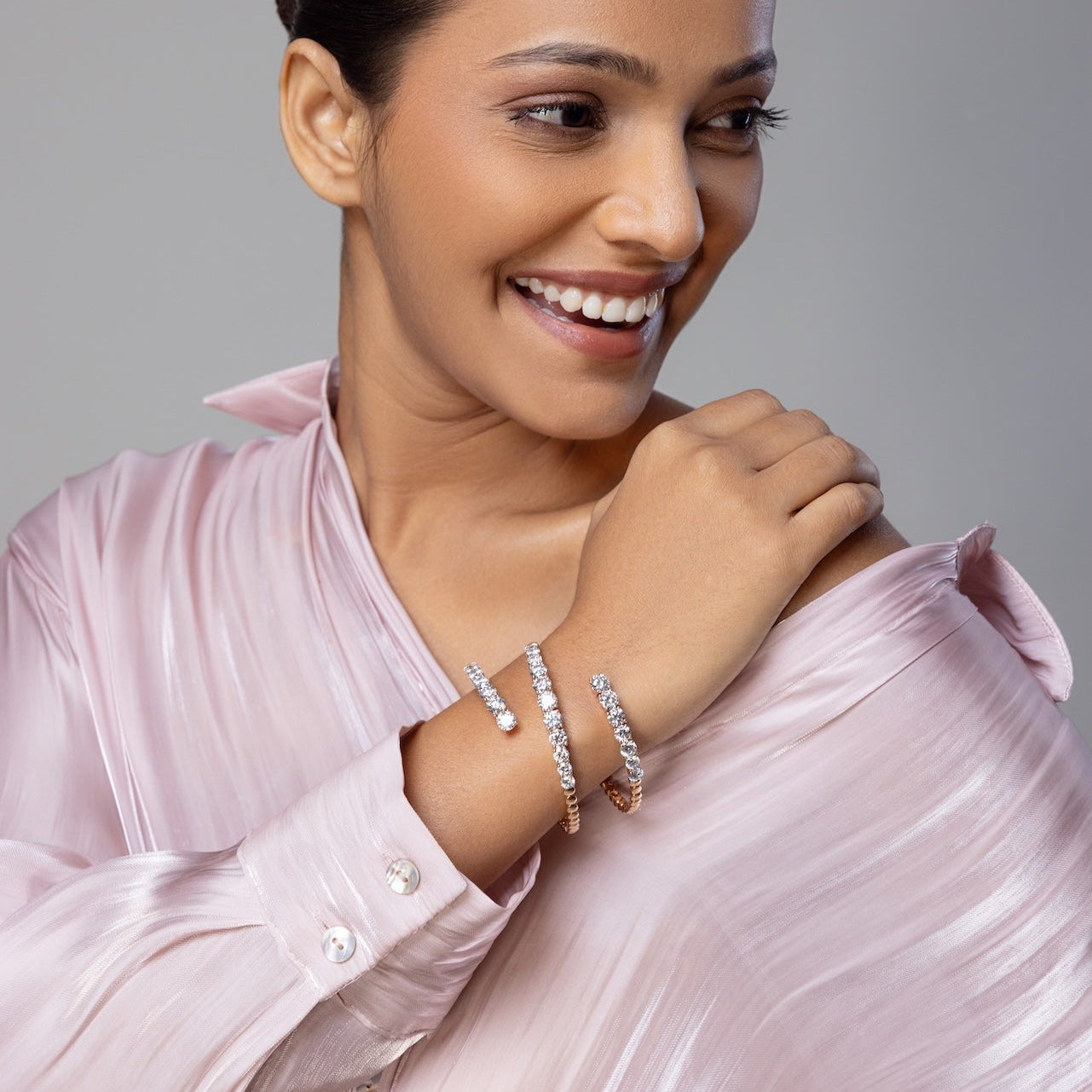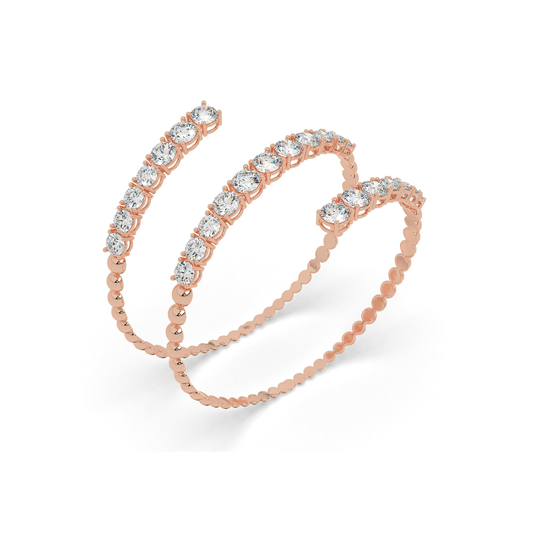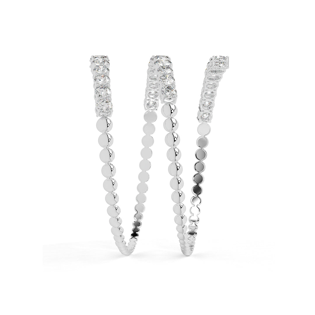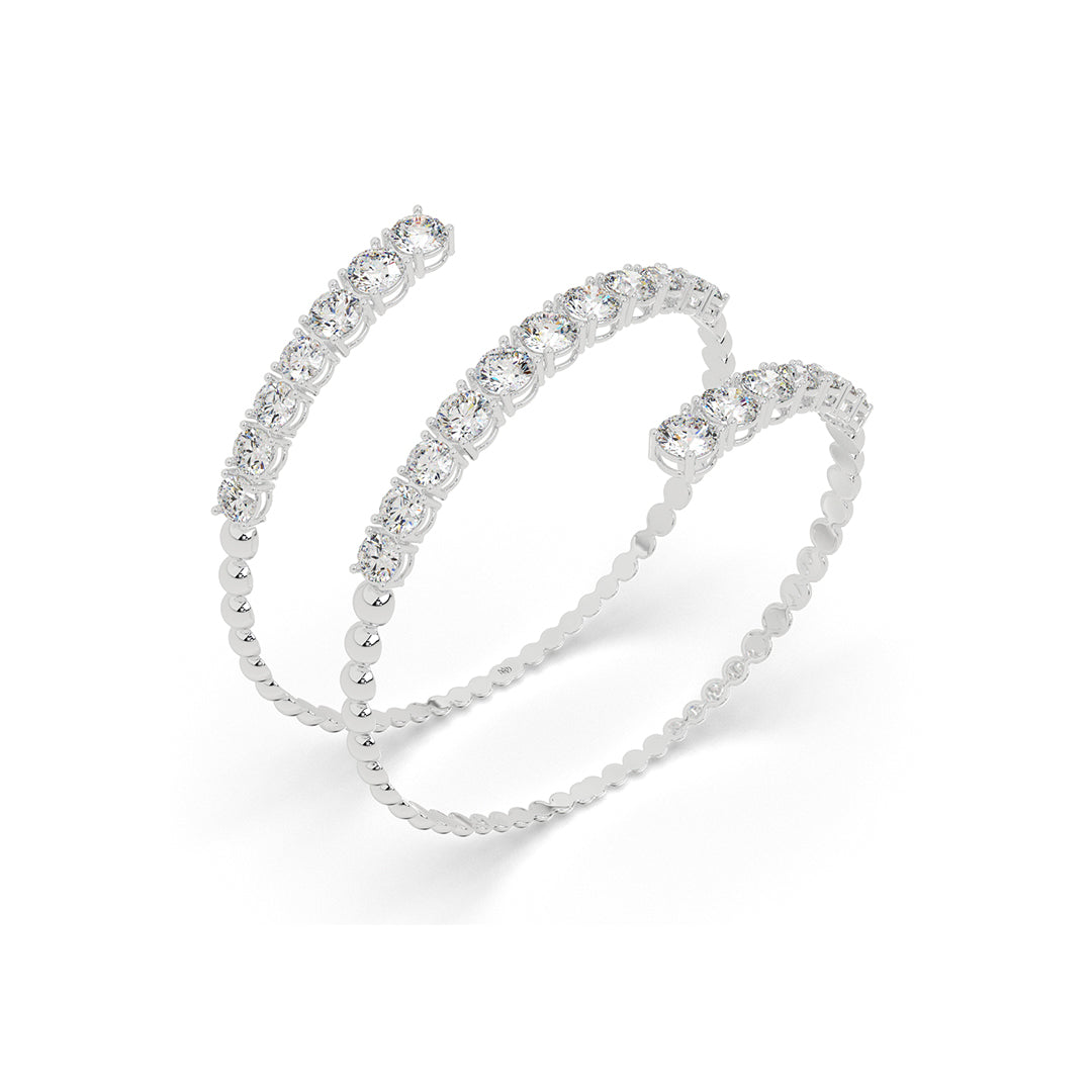A sinuous coil of gold ablaze with a continuous diamond pathway. Bold yet refined, it echoes the elegant flow of a se...