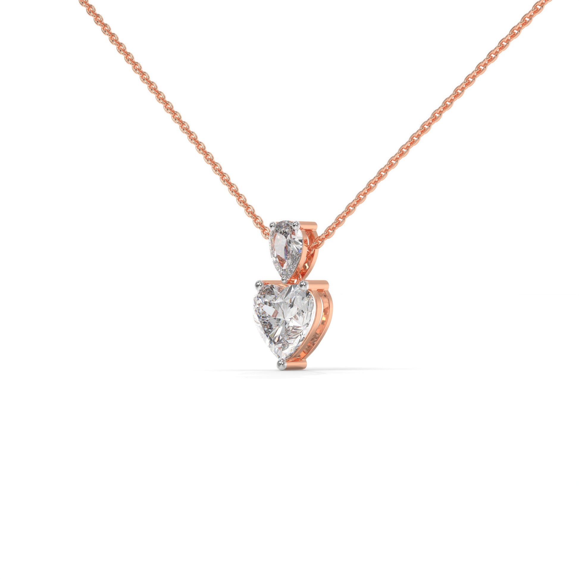 Two shapes, one emotion.The pear-cut diamond points upward — symbolising grace and growth — while the heart-cut below...