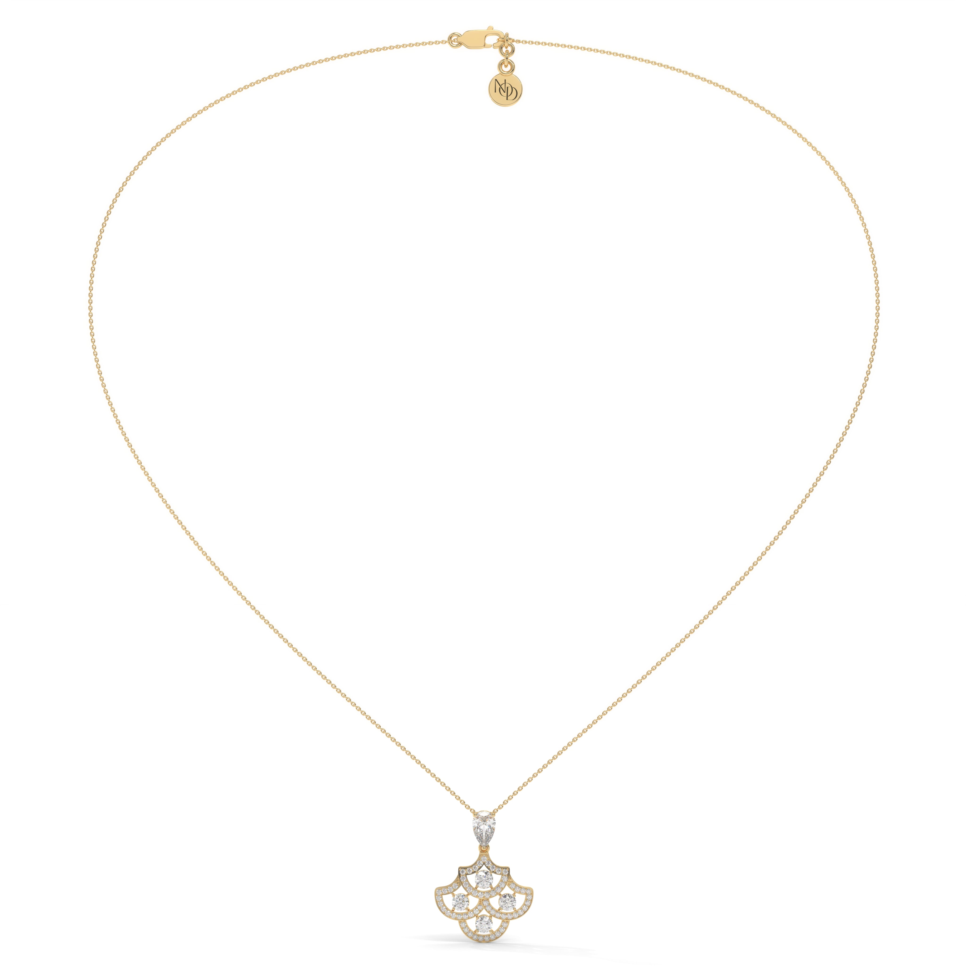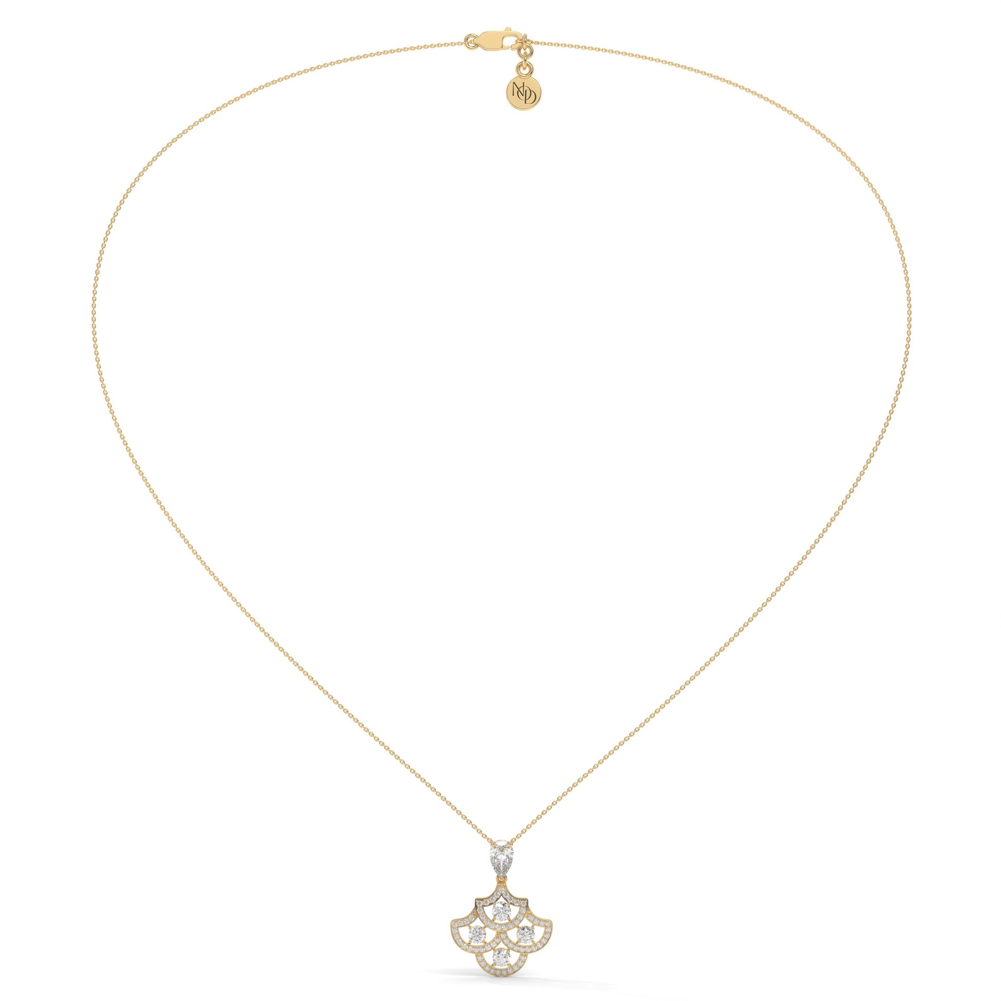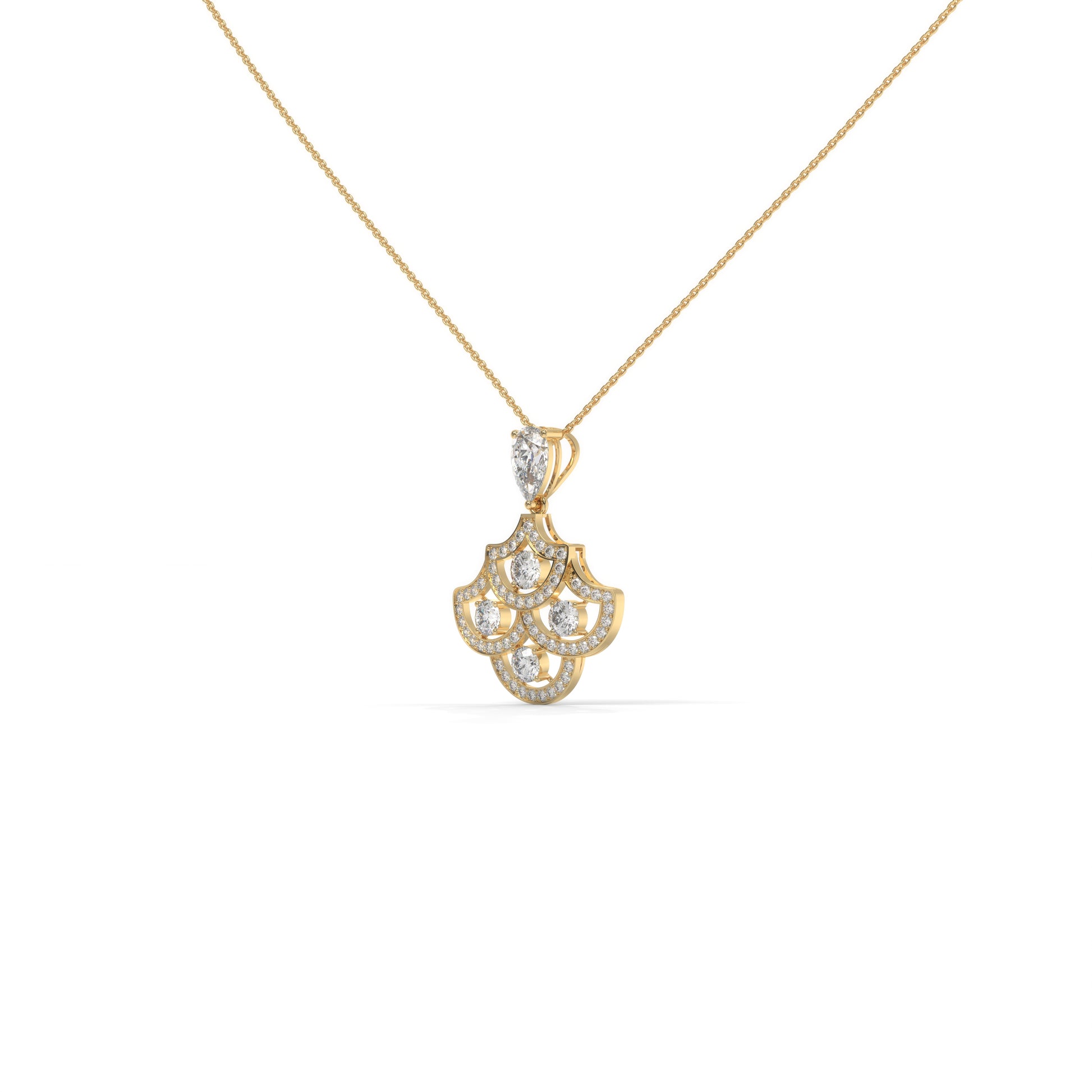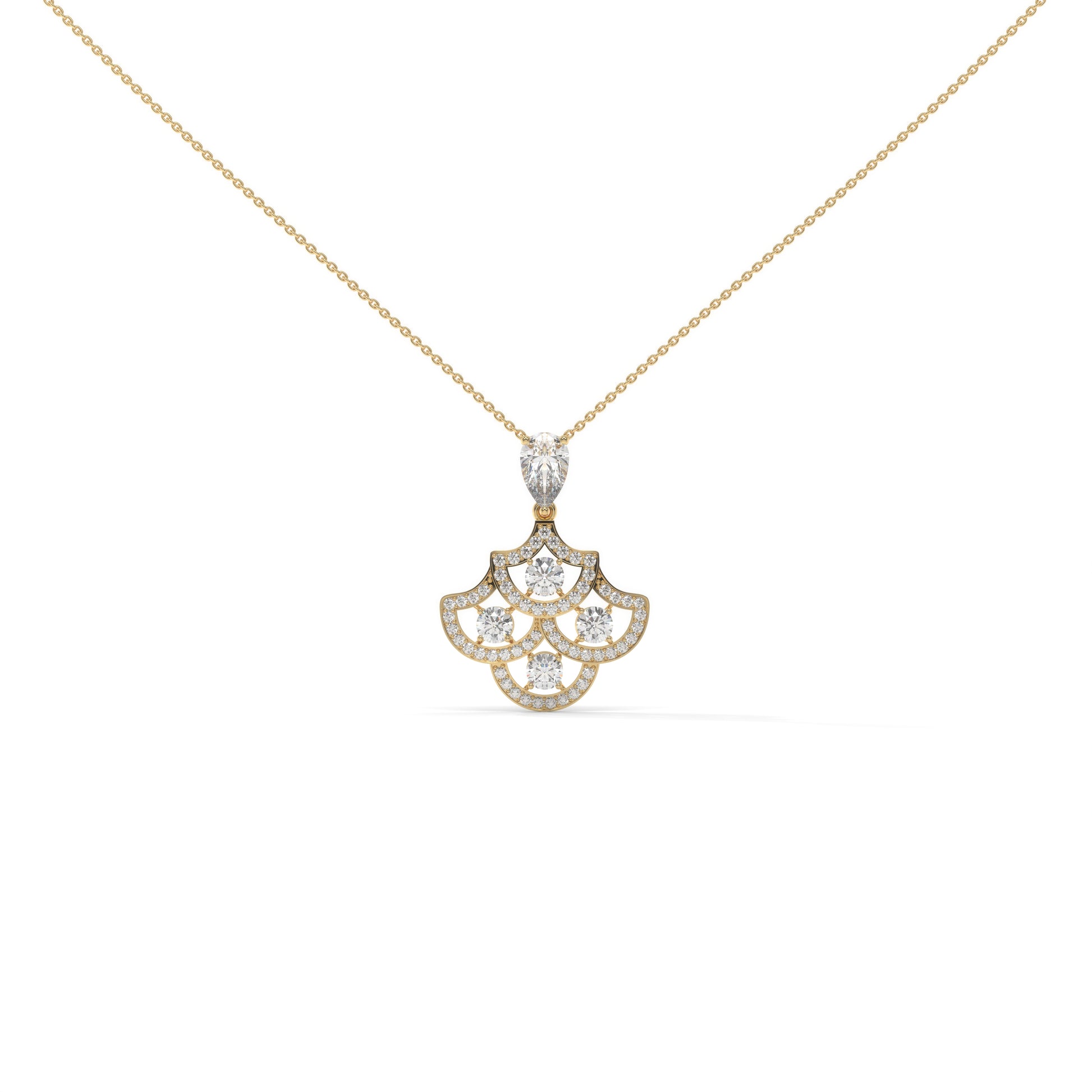 Inspired by timeless artistry, the Apsara Pendant flows with a rhythm of grace and symmetry.Its scalloped form — remi...