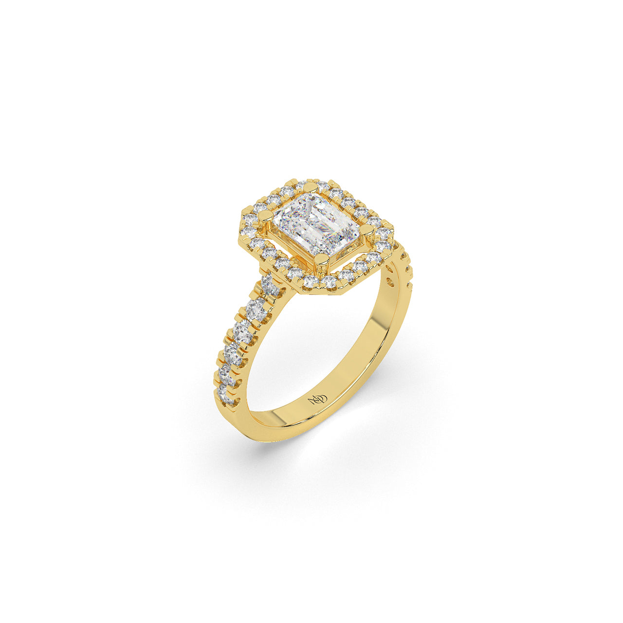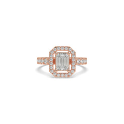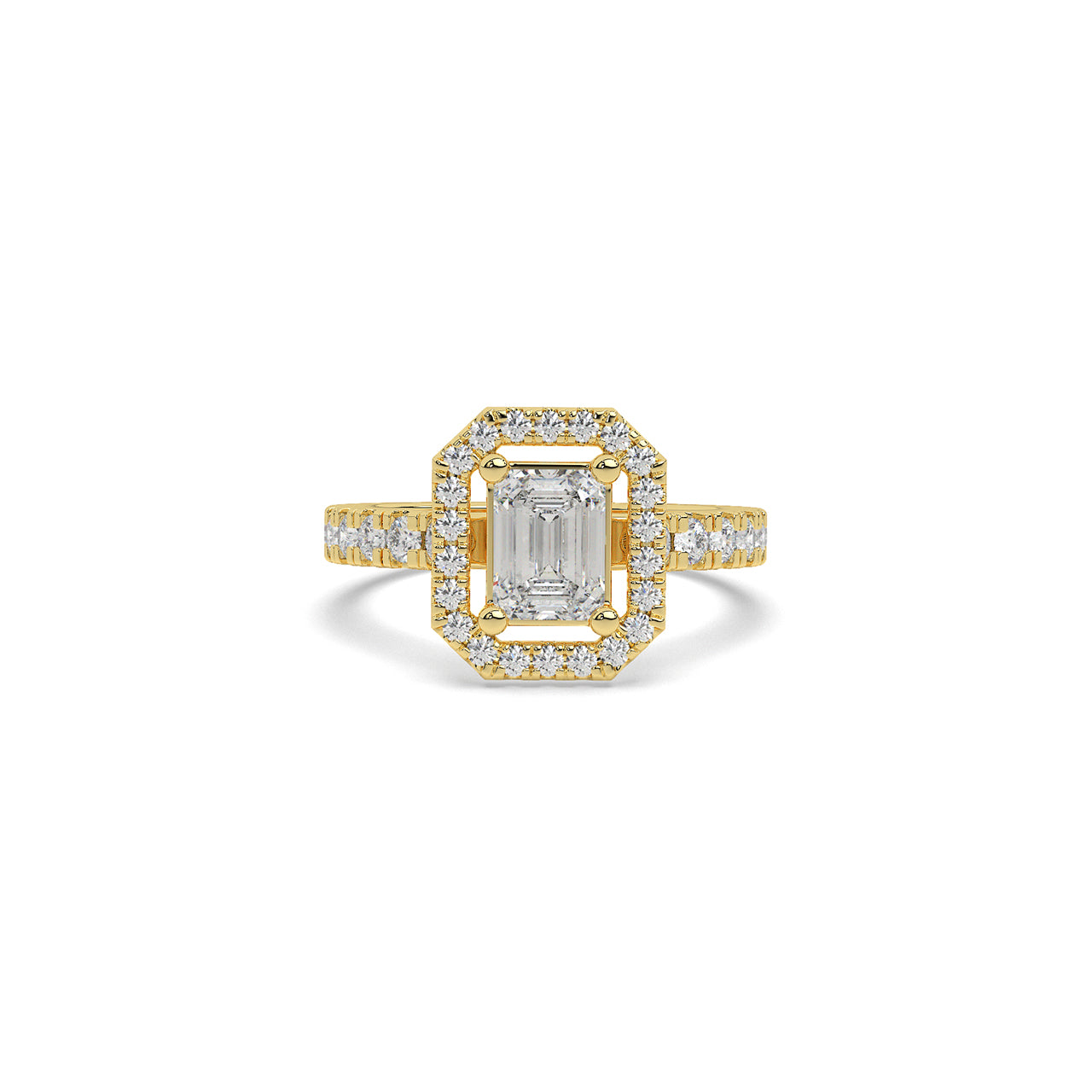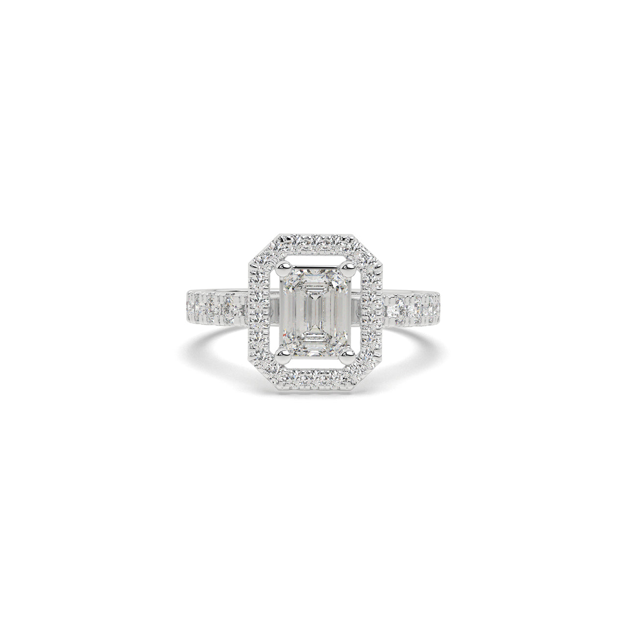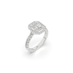 Inspired by the timeless elegance of Art Deco design, this ring features a striking emerald-cut center diamond framed...