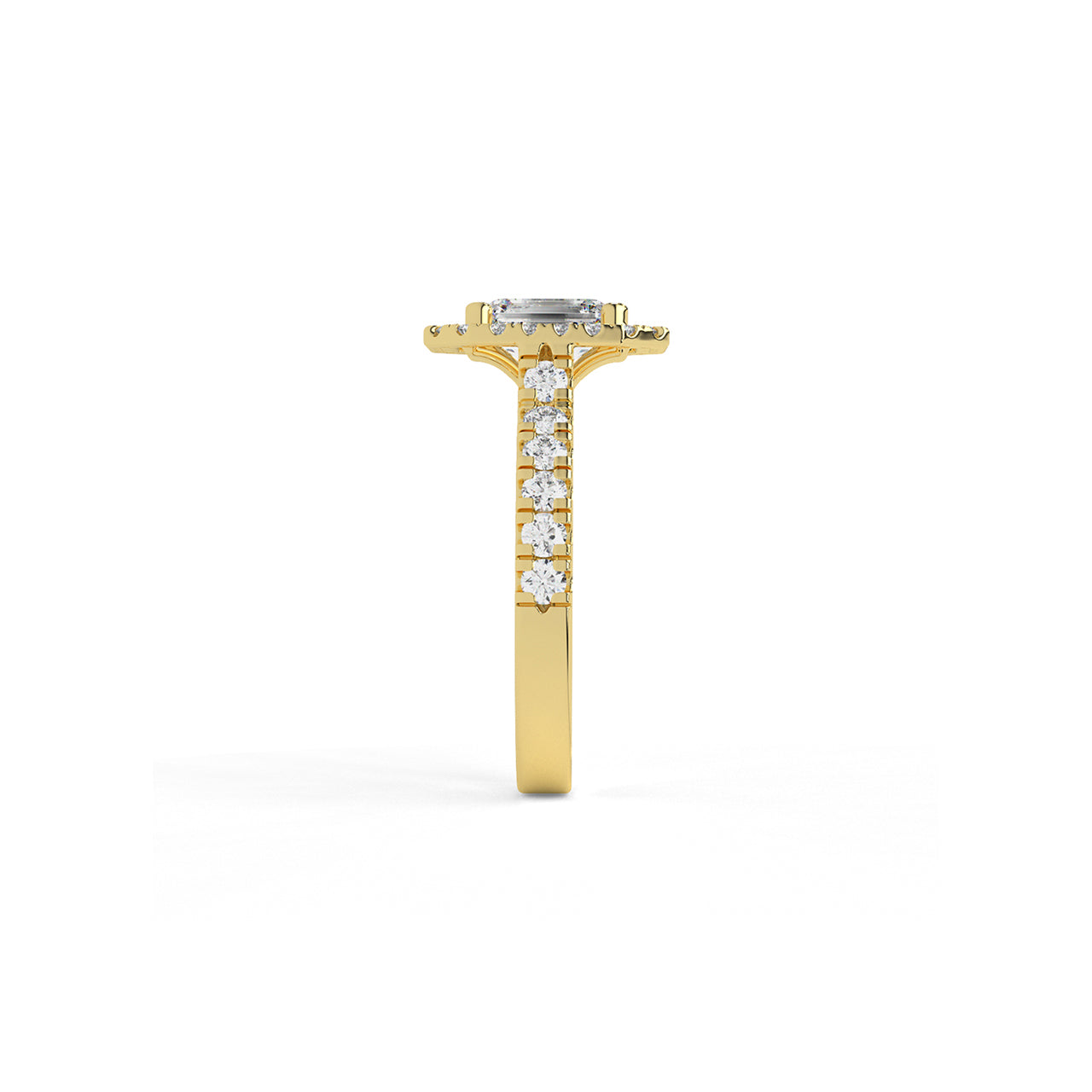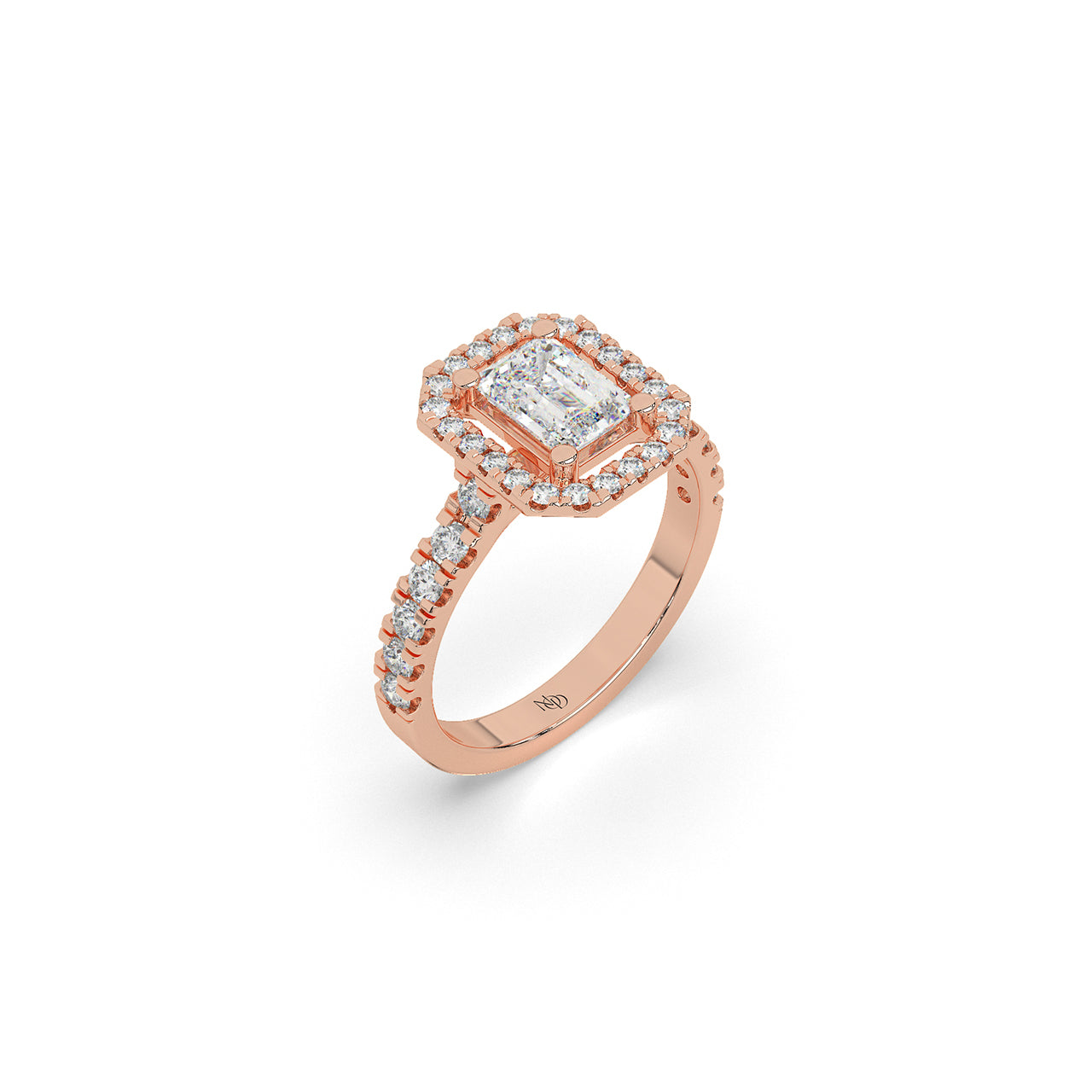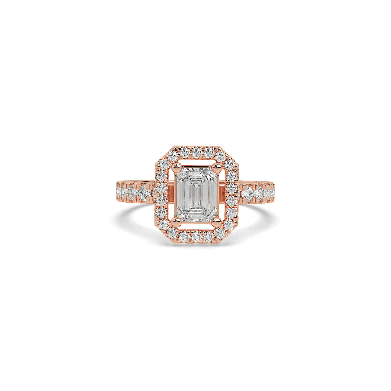 Inspired by the timeless elegance of Art Deco design, this ring features a striking emerald-cut center diamond framed...