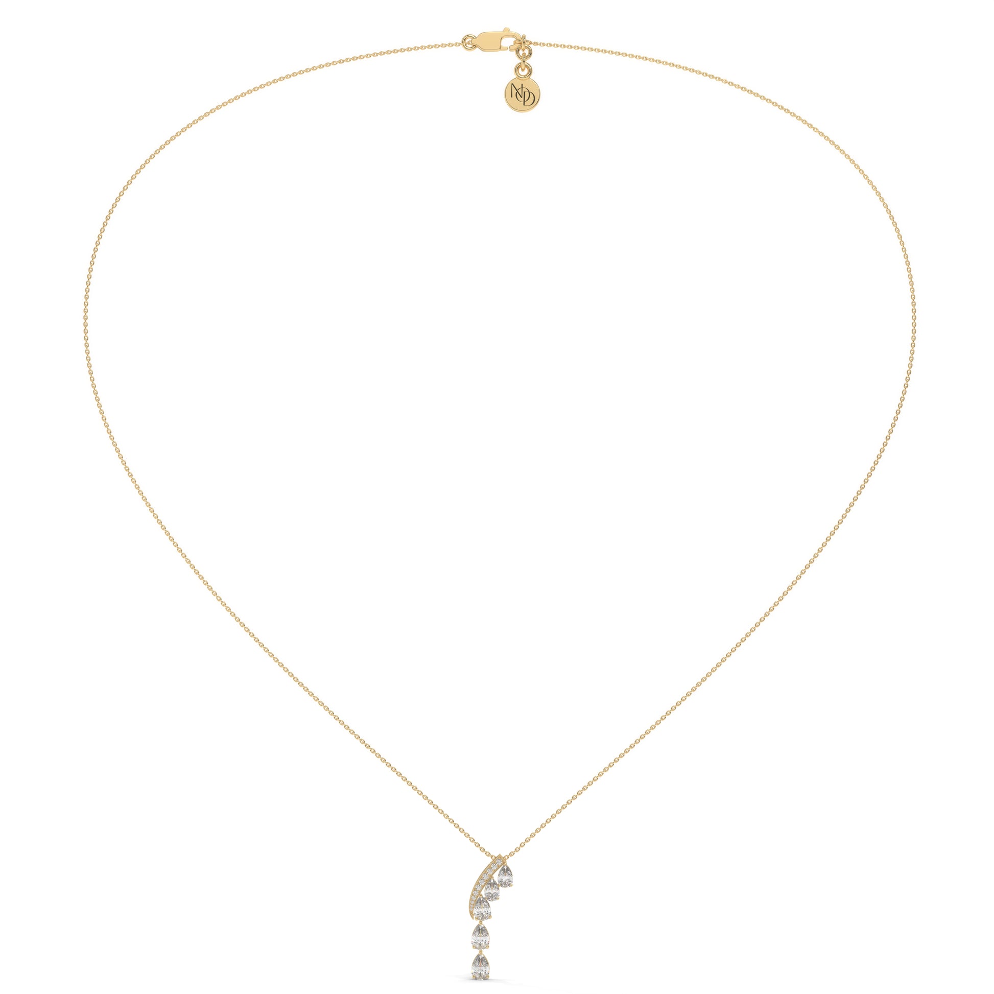 Inspired by the gentle rhythm of waves, the Leher Pendant celebrates grace in motion.A sweep of diamonds arcs softly ...