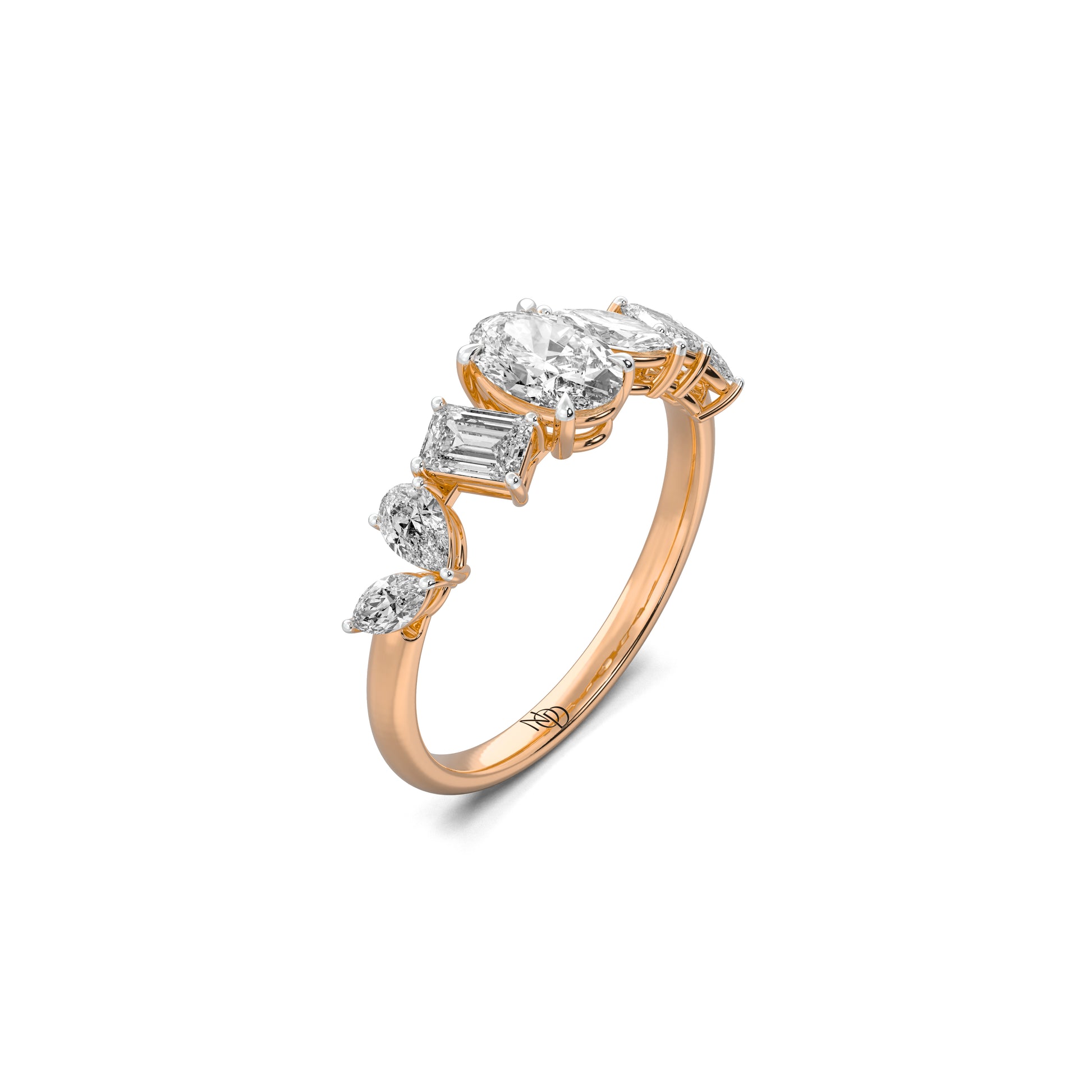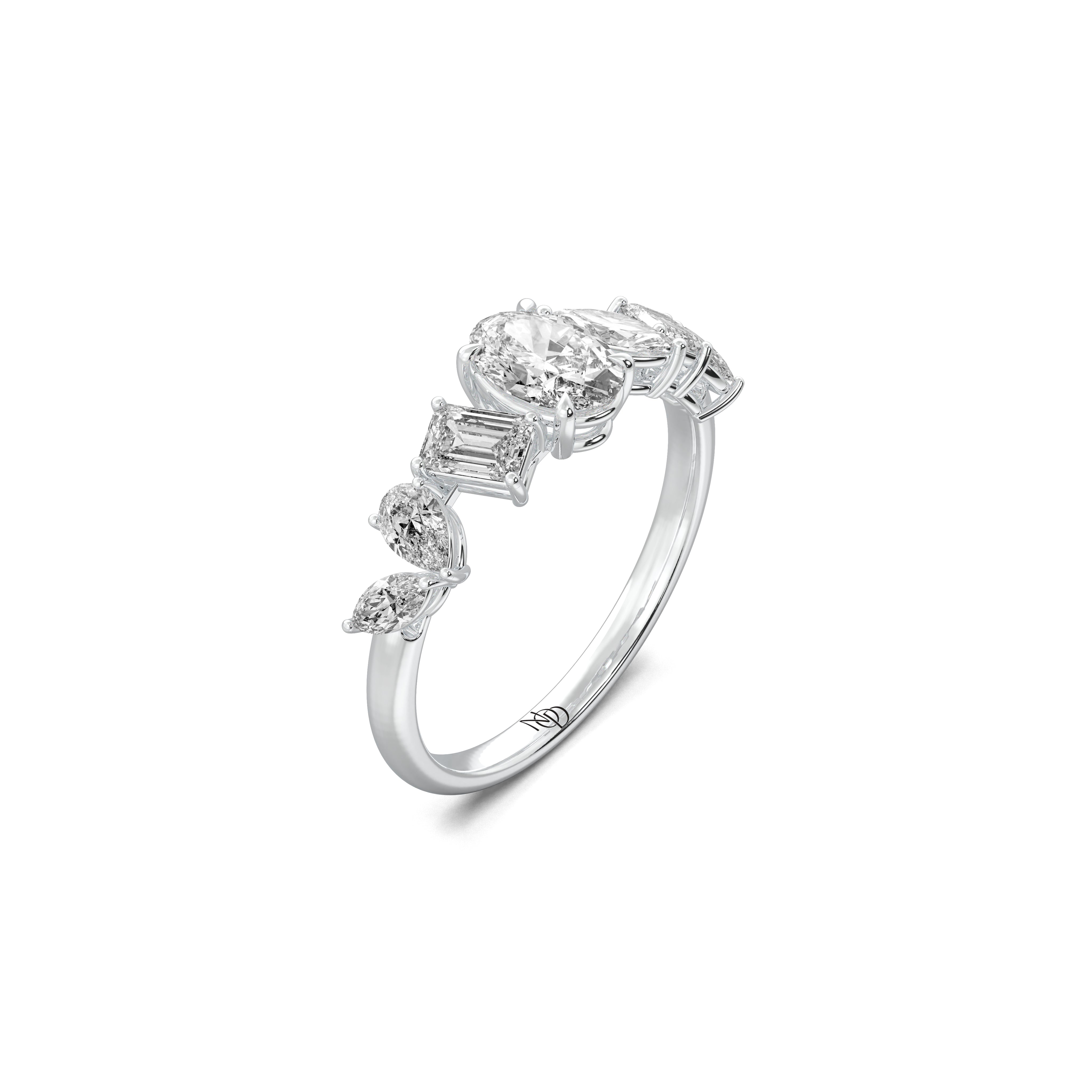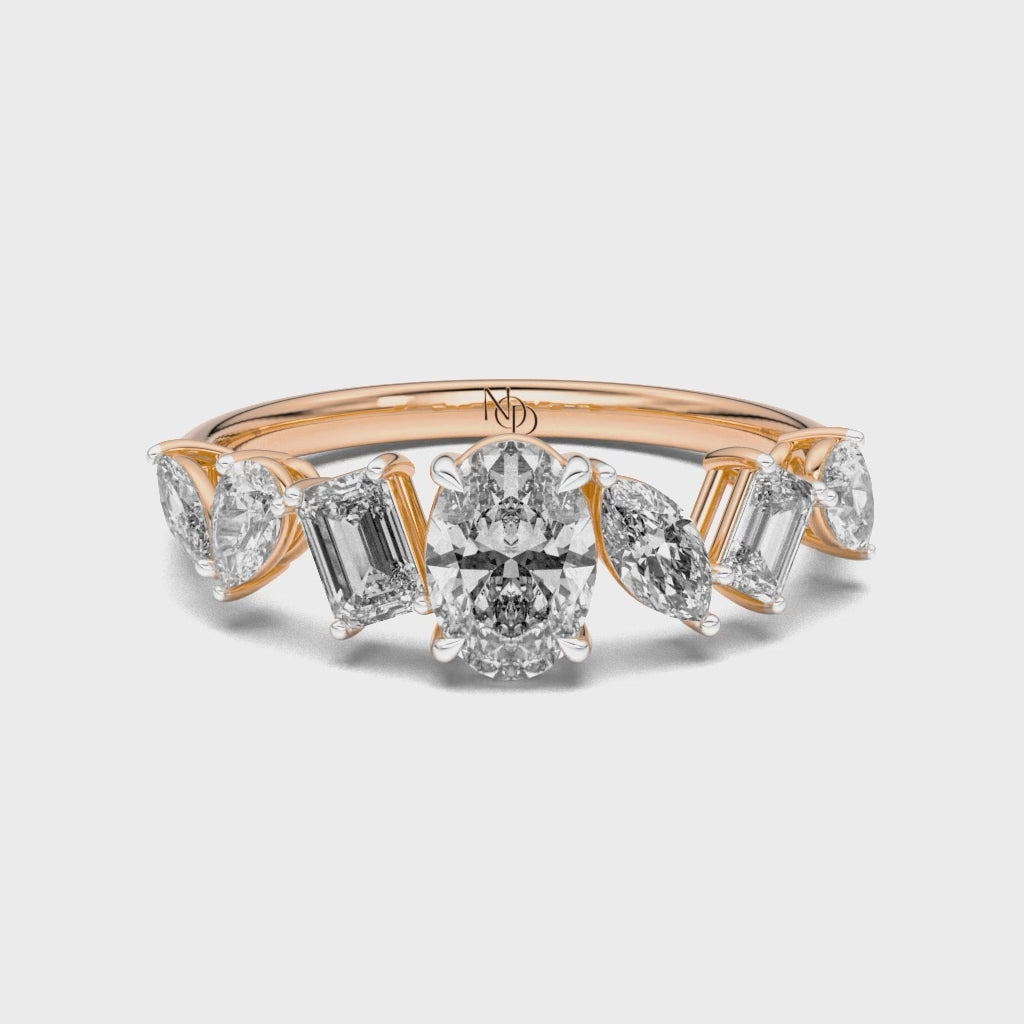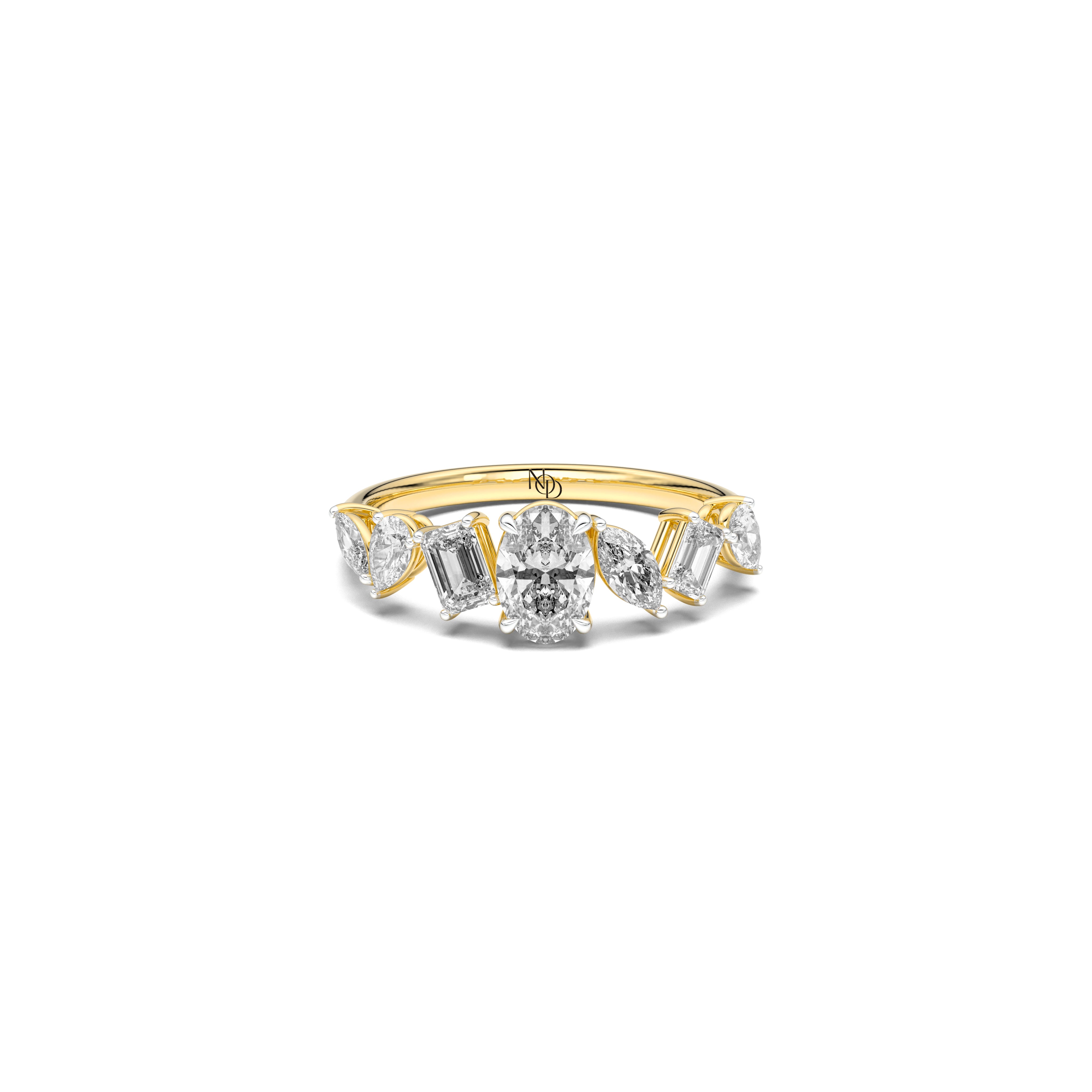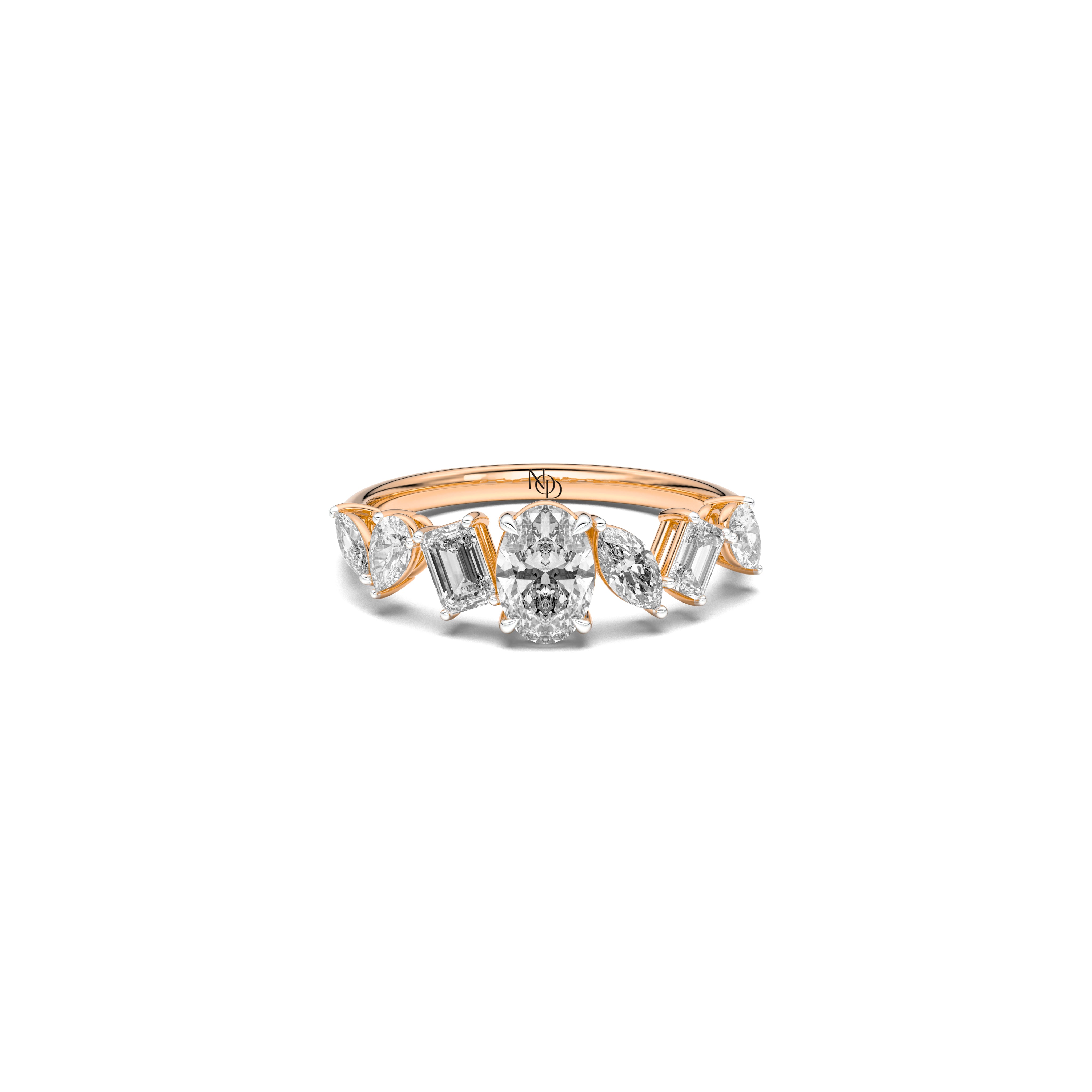 Every note of brilliance finds its place in rhythm. The Lyrical Band brings together pear, marquise, oval and emerald cut grown diamonds in a seamless composition of light - a quiet ode to the beauty of transition.
