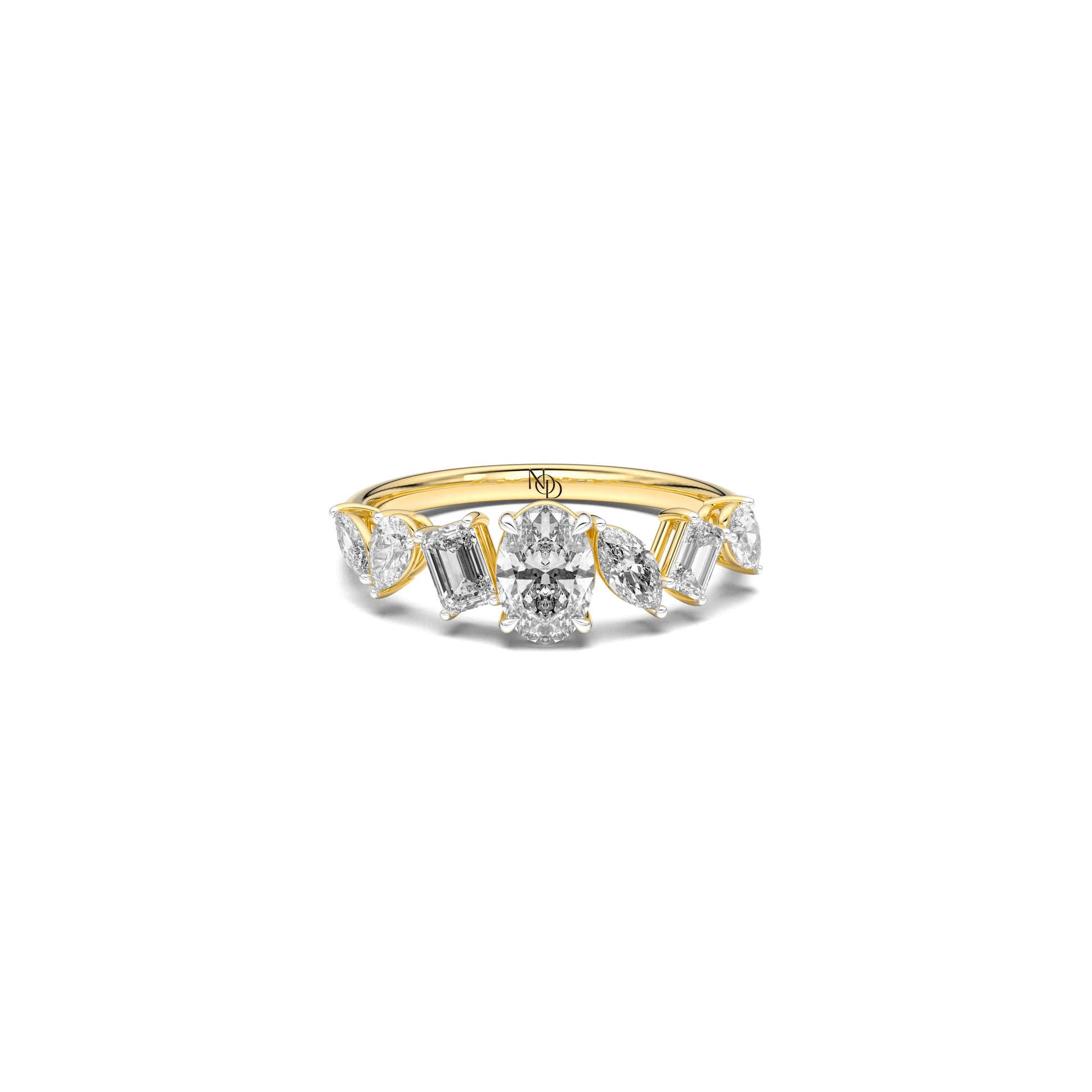 Every note of brilliance finds its place in rhythm. The Lyrical Band brings together pear, marquise, oval and emerald...