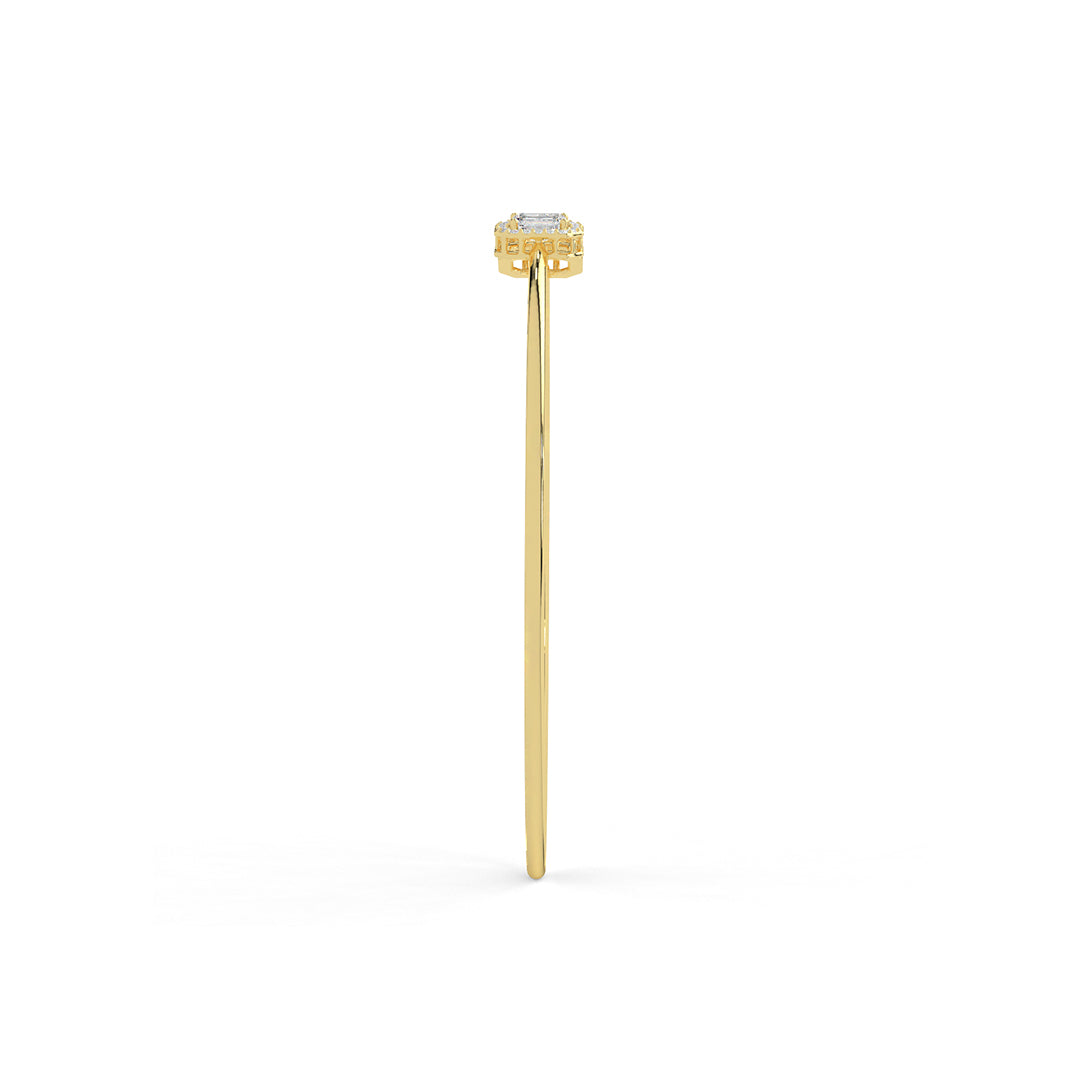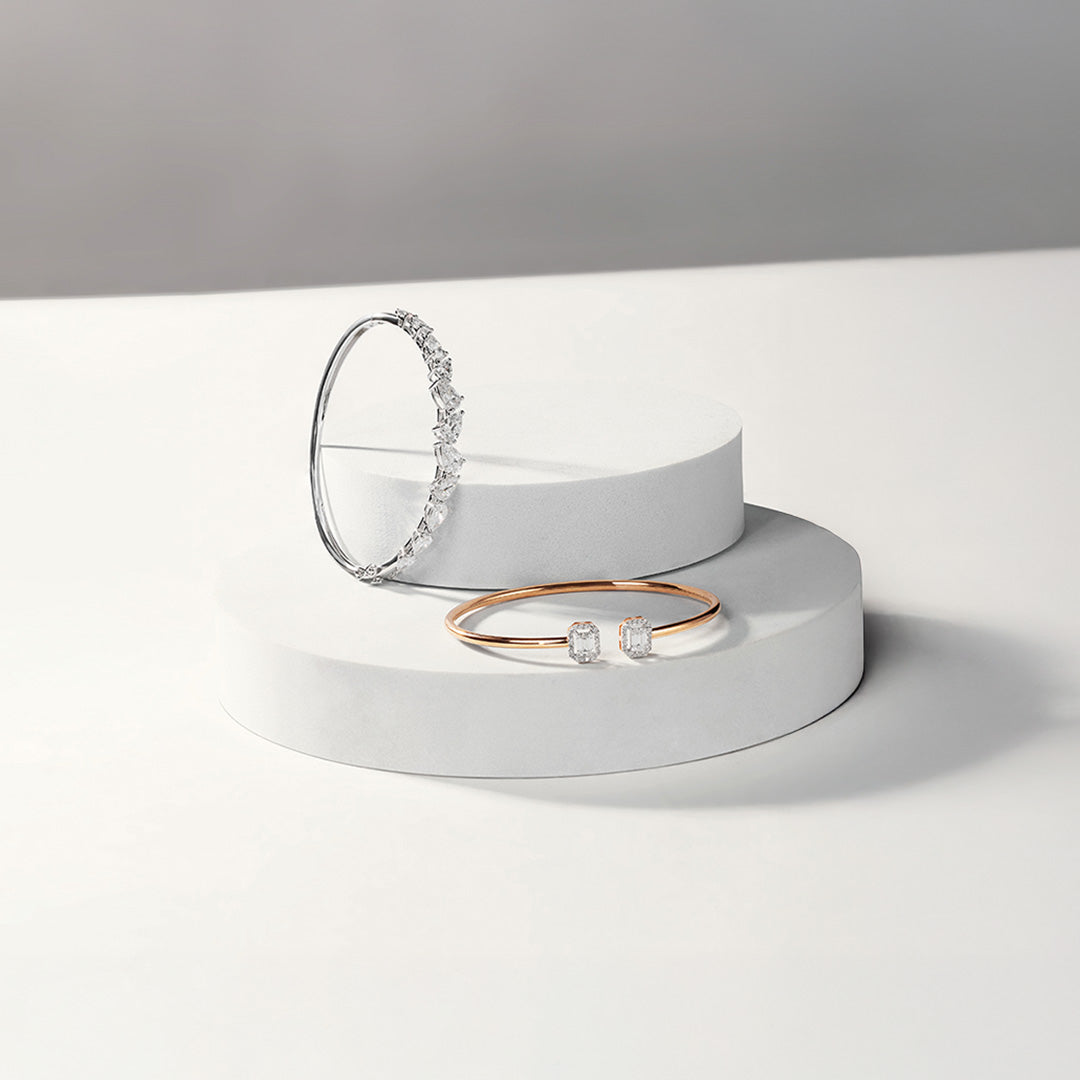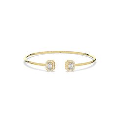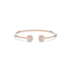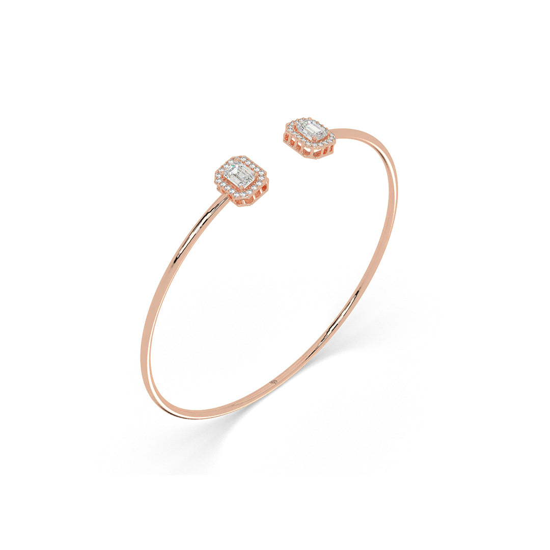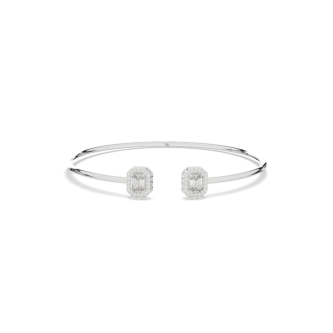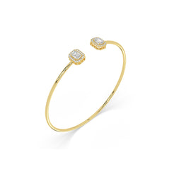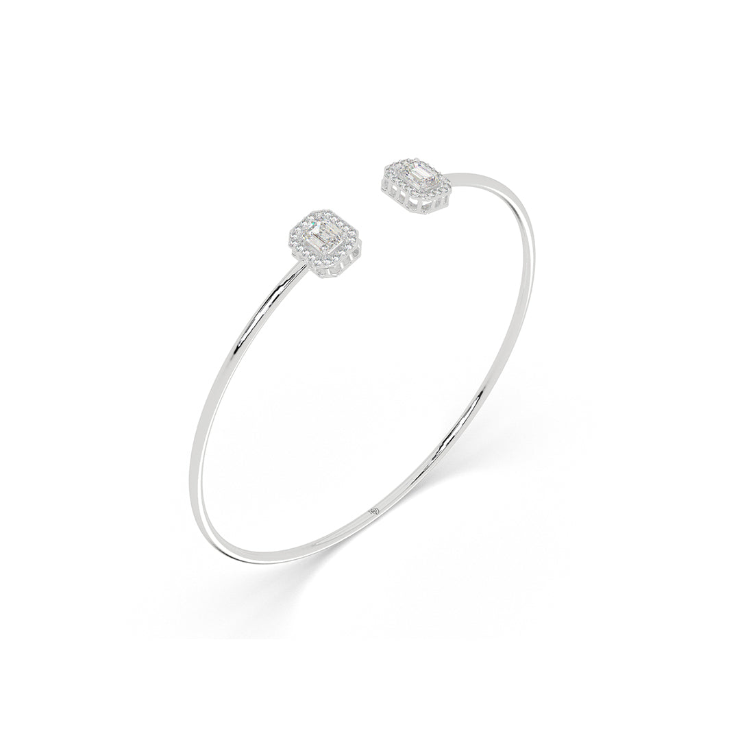 An open-ended band culminating in two scintillating diamond endpoints. A minimalist duet of light, it offers a grace...